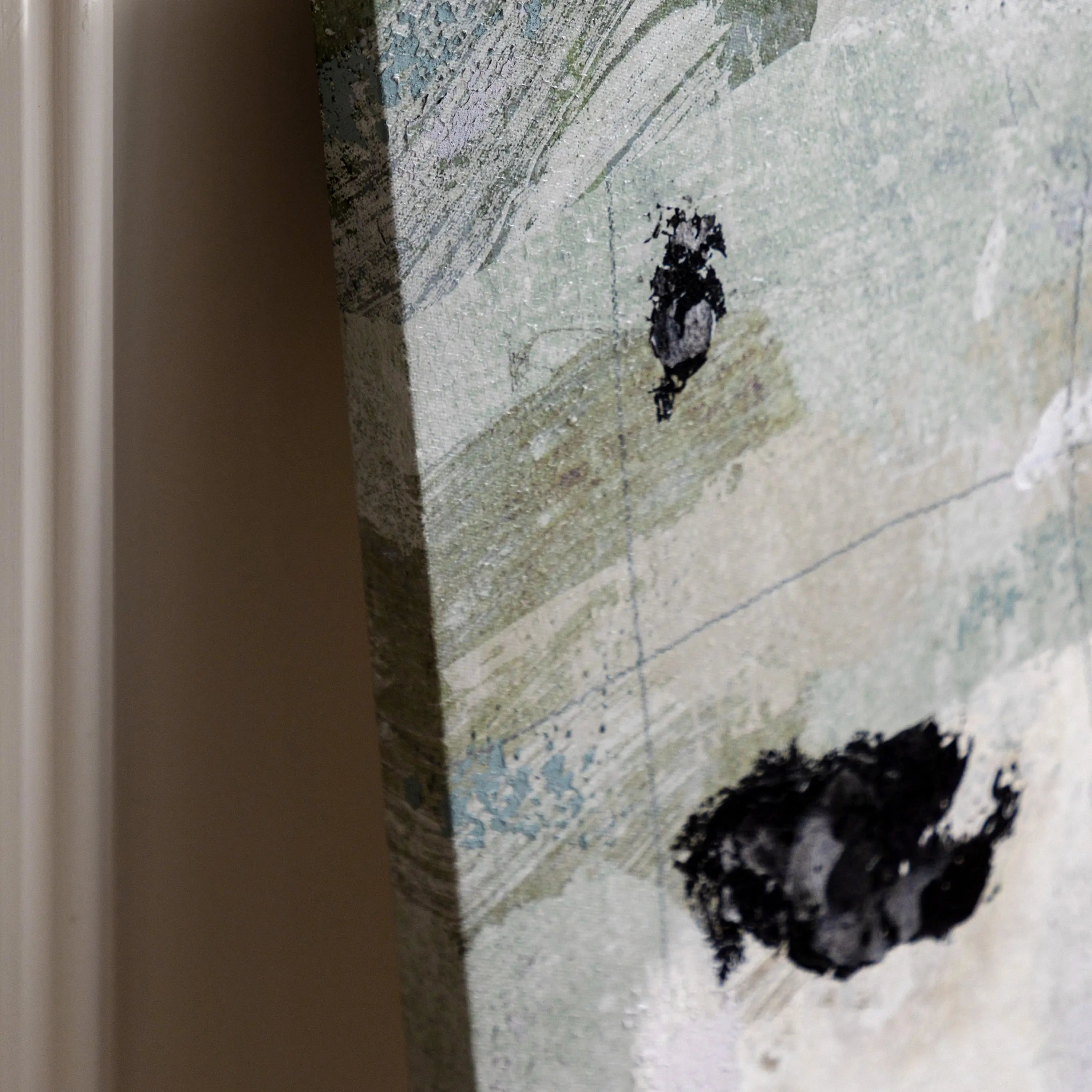 A serene set of 2 abstract artworks exploring balance and texture through tactile layered tones and thick hand painted elements in grey, cream and black. Subtle marks and soft contrasts create a sense of rhythm and harmony, inviting quiet contemplation. Perfect as a coordinated pair or placed individually on separate walls.