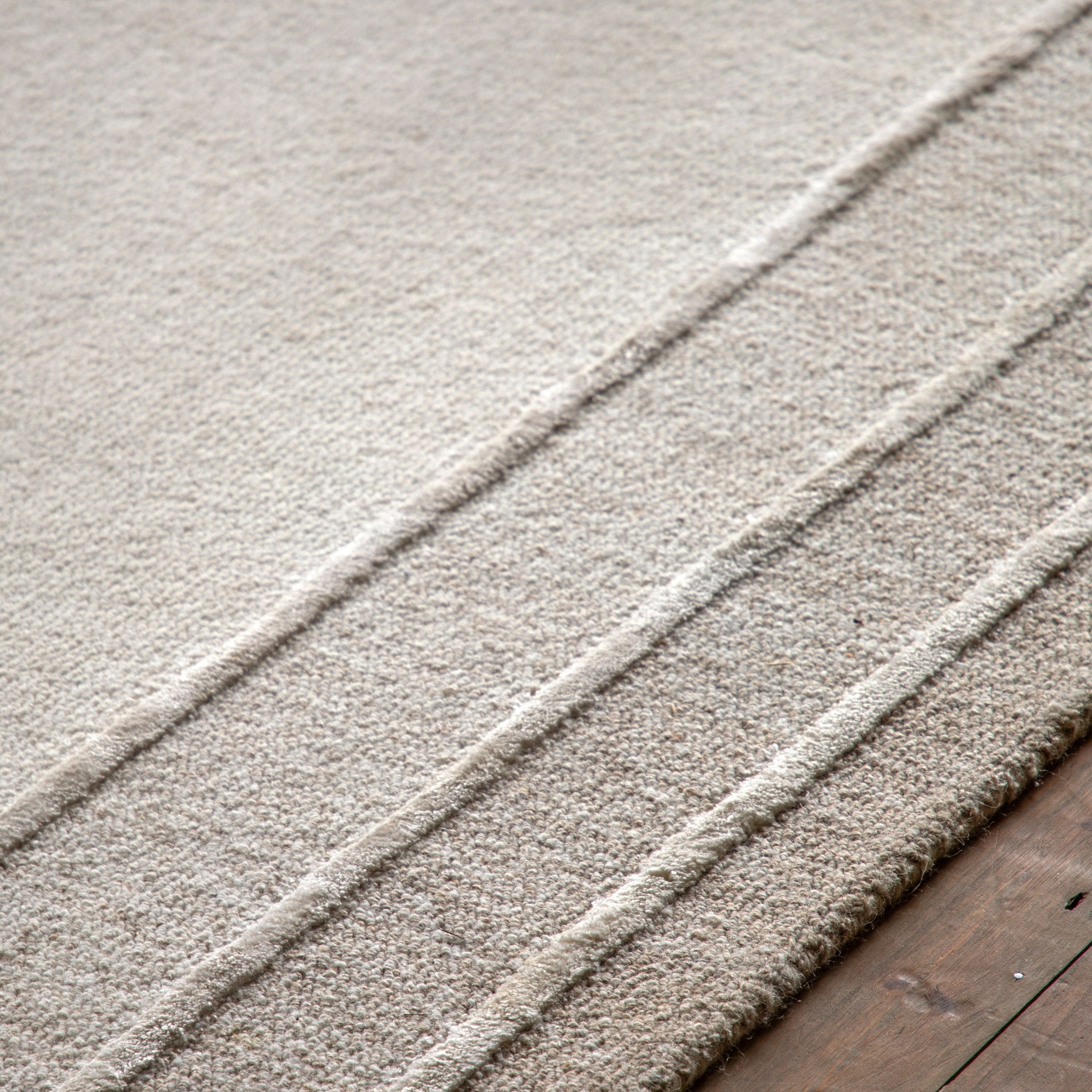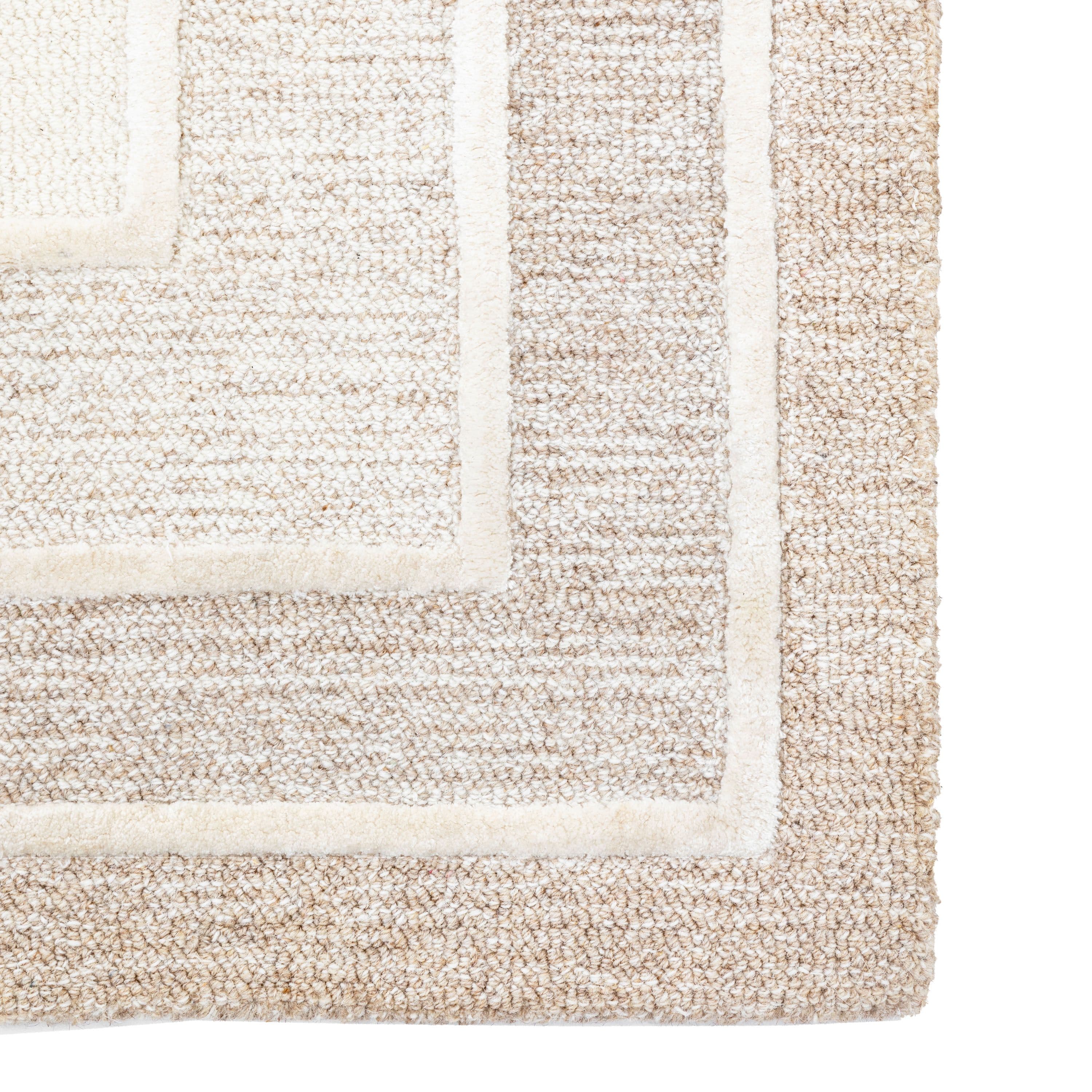The contemporary design and sleek neutral tones of this rug make it a perfect fit for a wide range of interior styles. A hand tufted construction creates depth and detail in the design while providing a soft feel underfoot.