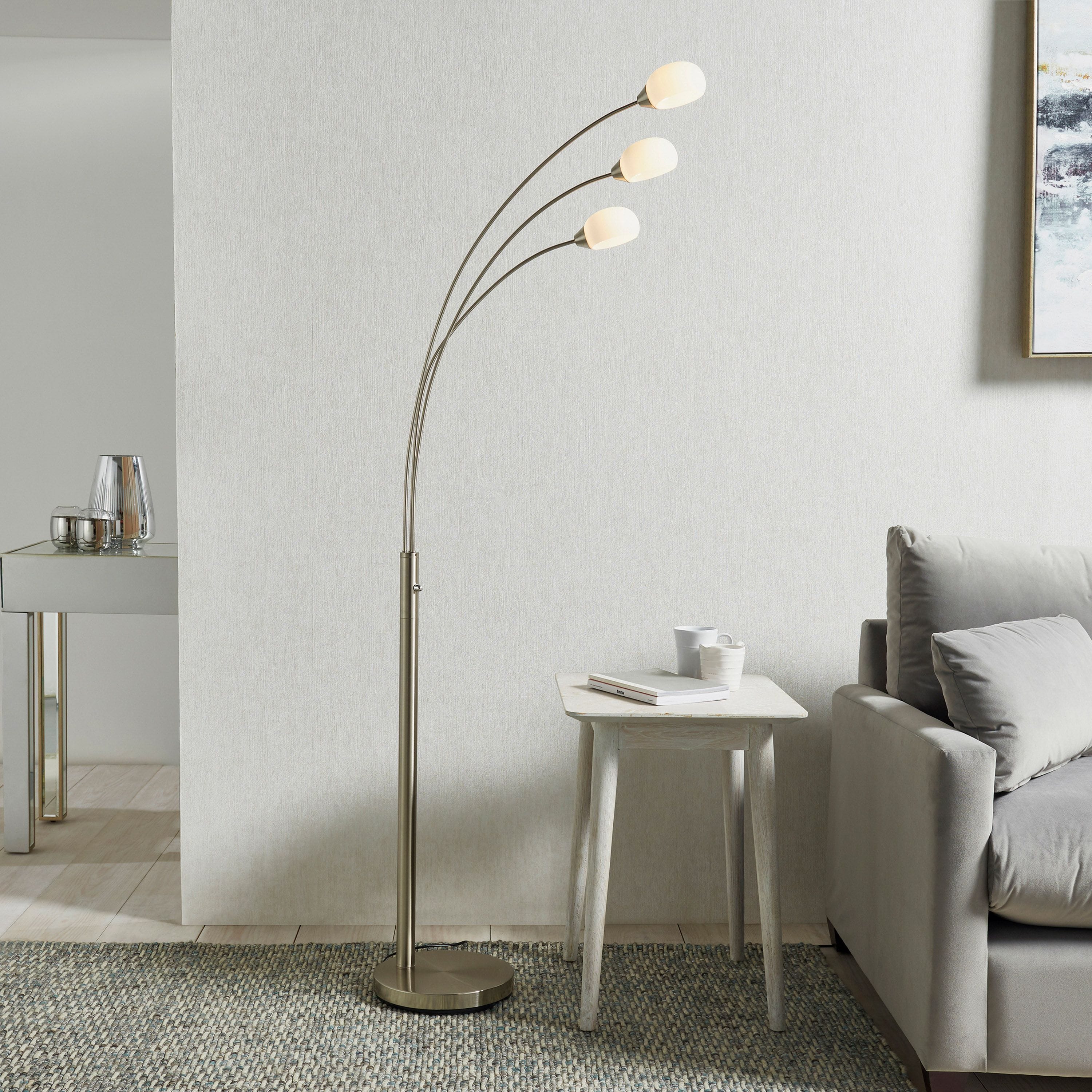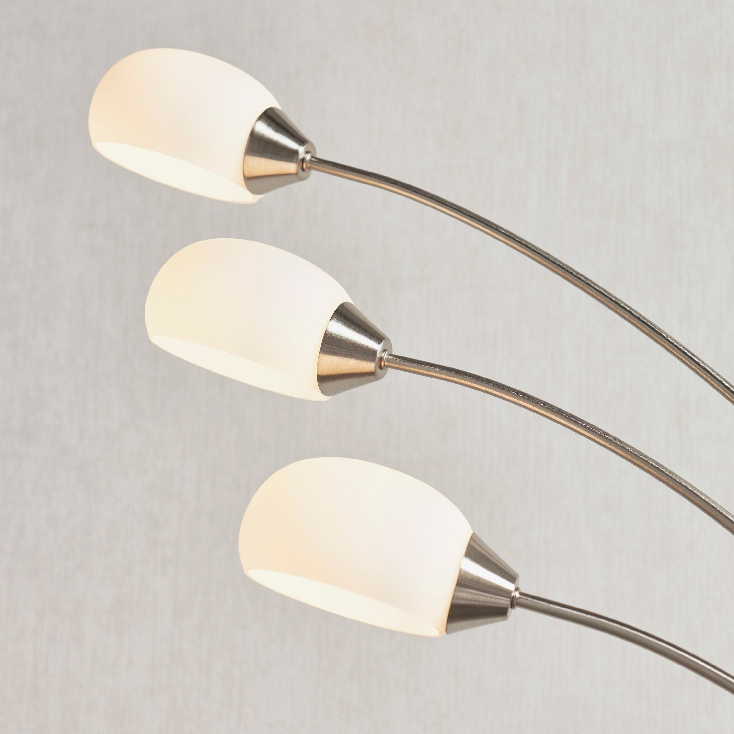 Jazpar 3 Floor Lamp is the perfect addition to any modern home. With its sleek satin nickel finish and white glass shades, this multi arm integrated LED lamp adds a touch of sophistication to any room. But what sets this lamp apart is its fast delivery - you won't have to wait long to enjoy its warm white light. The centrally located rotary dimmer switch makes it easy to control the brightness, making it perfect for any occasion.
