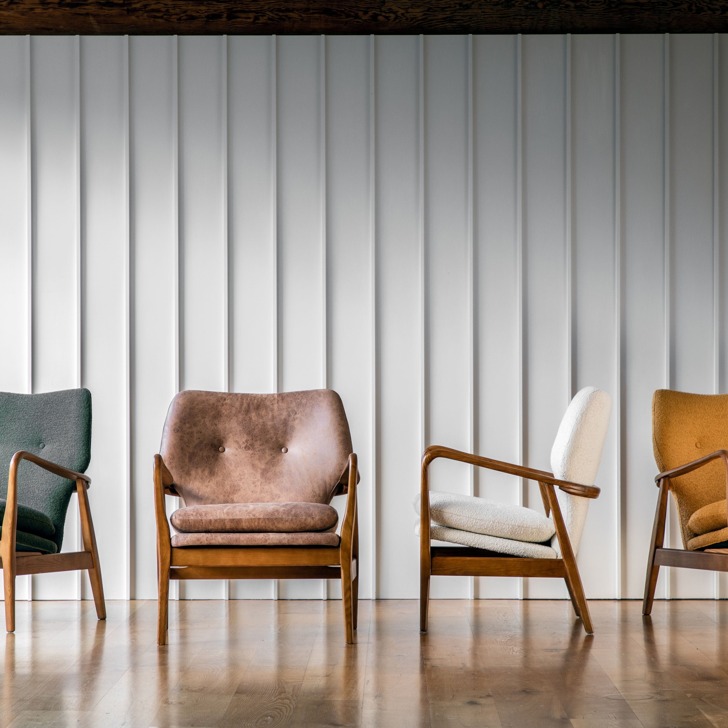 This distinctive Mid-Century style armchair has a solid Ash frame and a trendy Grey Linen style fabric seat