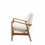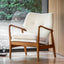 This remarkable Mid-Century style chair features an elegantly shaped solid ash wood frame which makes it a stand out piece in any interior. It is upholstered in cream natural linen with button details and a soft cushion for comfort.