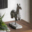 Made from cement with an aged appearance, this antiqued horse sculpture is an update on a classic. Designed to suit a variety of indoor or outdoor spaces, the grey horse body is displayed on a large square cement base.