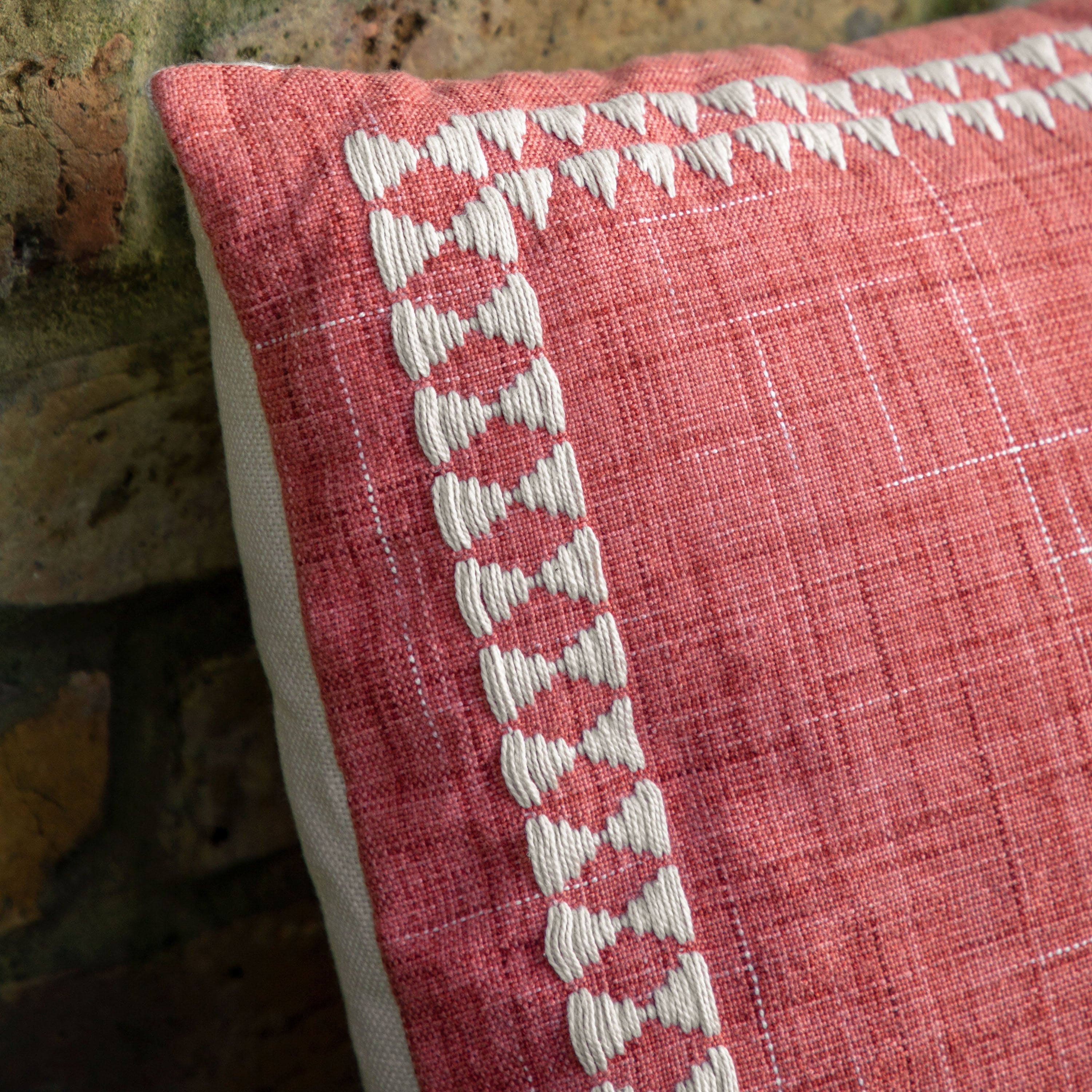 Upgrade your space indoors or out with this practical and comfy cushion. Made with showerproof fabric designed to be used inside or outside the contrasting pink and green stitch design will add style and comfort wherever it's used.
