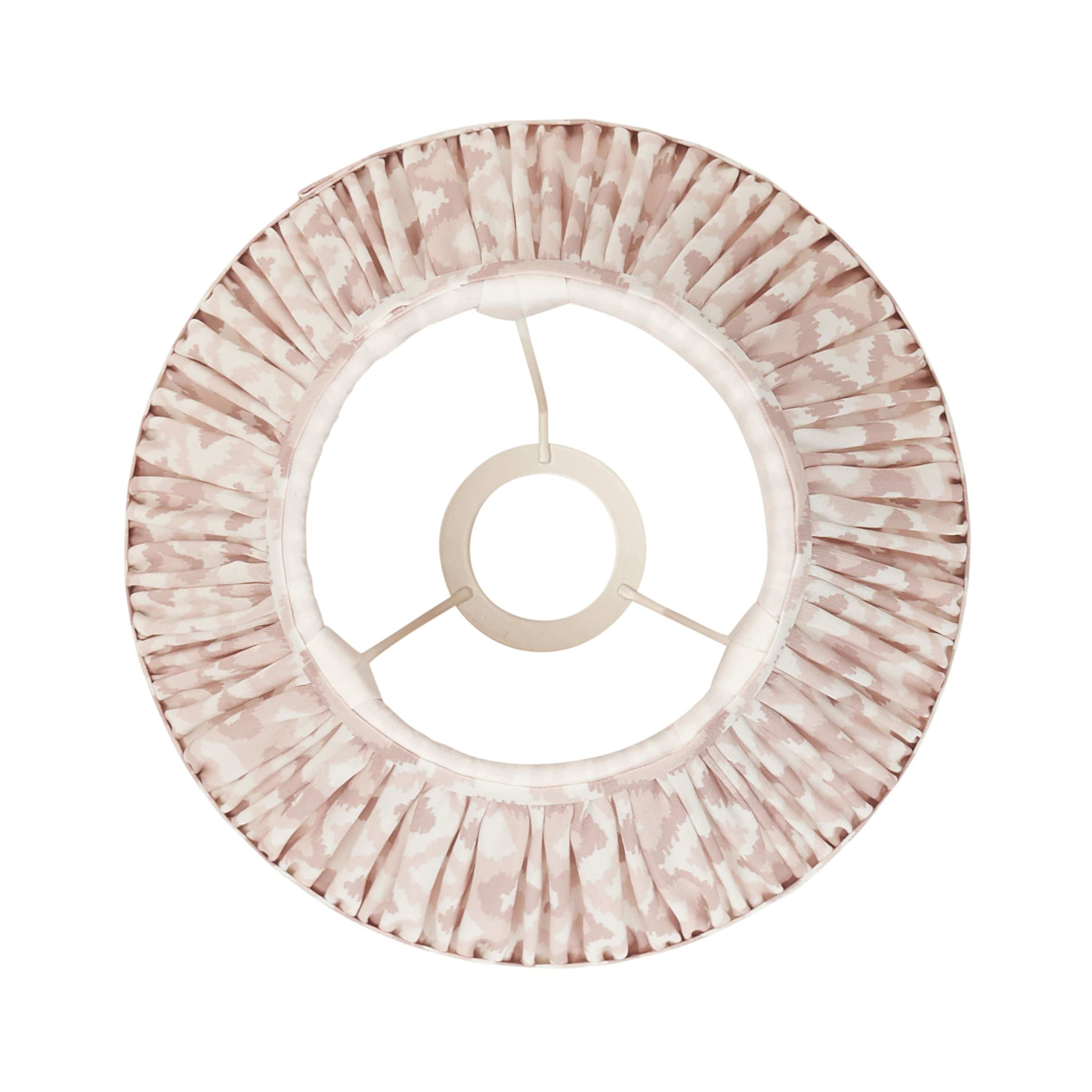 Introducing the Katu Shade Neutral Print Fabric 25cm, the perfect addition to your home decor. This 16cm tapered shade features a unique Katu pattern design in a beautiful coral pink color, with taped edge detailing and a plain inner lining. The clip gimbal allows for easy fitting of golf or candle bulbs, making it a versatile choice for any room.