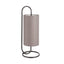 Floating cylinder grey fabric shade encapsulated by the soft curves of matt black painted metal work. A table light perfect for today's contemporary living; matching items and other finishes also available.