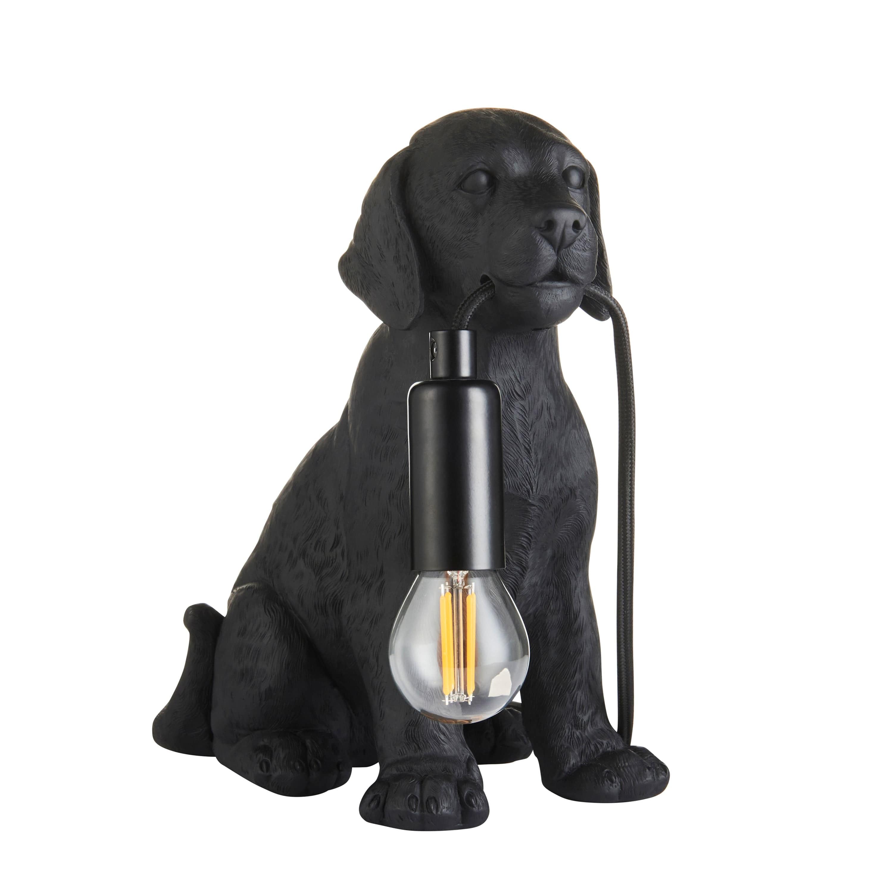 Introducing the Labrador Puppy Table Lamp Black, the perfect addition to any dog lover's home. Made with high quality resin, this lamp features a charming Labrador puppy design that will fill your space with light and love. The lamp is finished in vintage gold with black detailing, adding a touch of elegance to any room. With an inline on/off switch and 1.5 metre black fabric cable, you can easily move this lamp to different locations. Pair it with an E14 LED filament lamp for a trendy look.