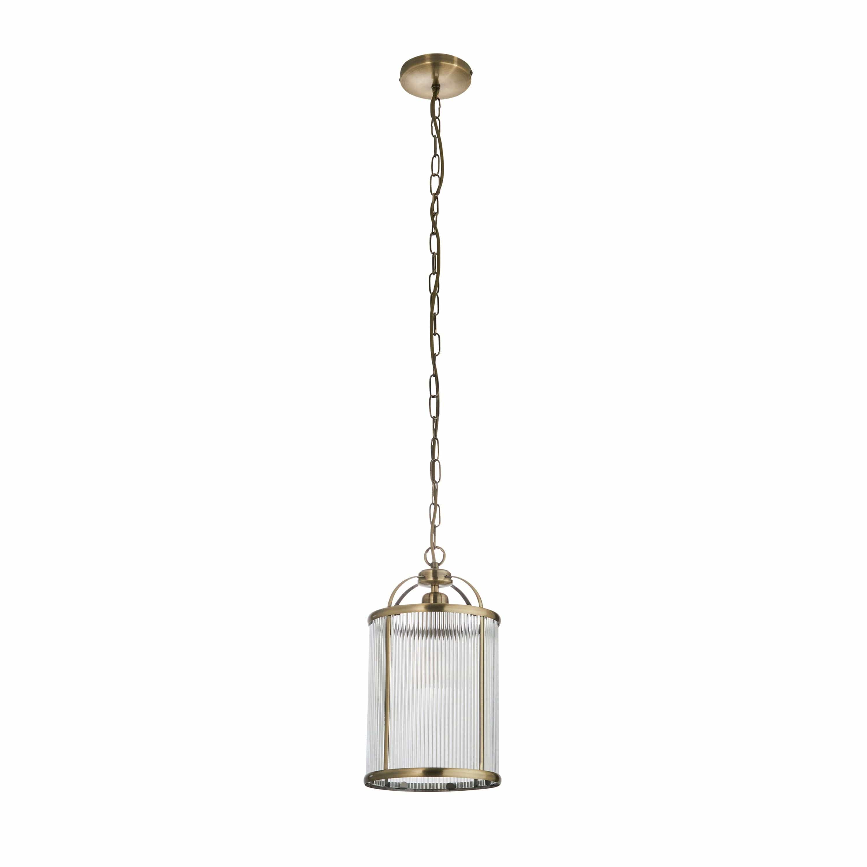 Lambeth Ribbed Pendant is a timeless and elegant addition to any space. Its ribbed glass panels and antique brass finish metal work exude understated sophistication. With an adjustable chain and gold cable, this pendant is perfect for stairwells, hallways, dining areas, and living spaces. For those in need of more light, a 4 light version is also available.