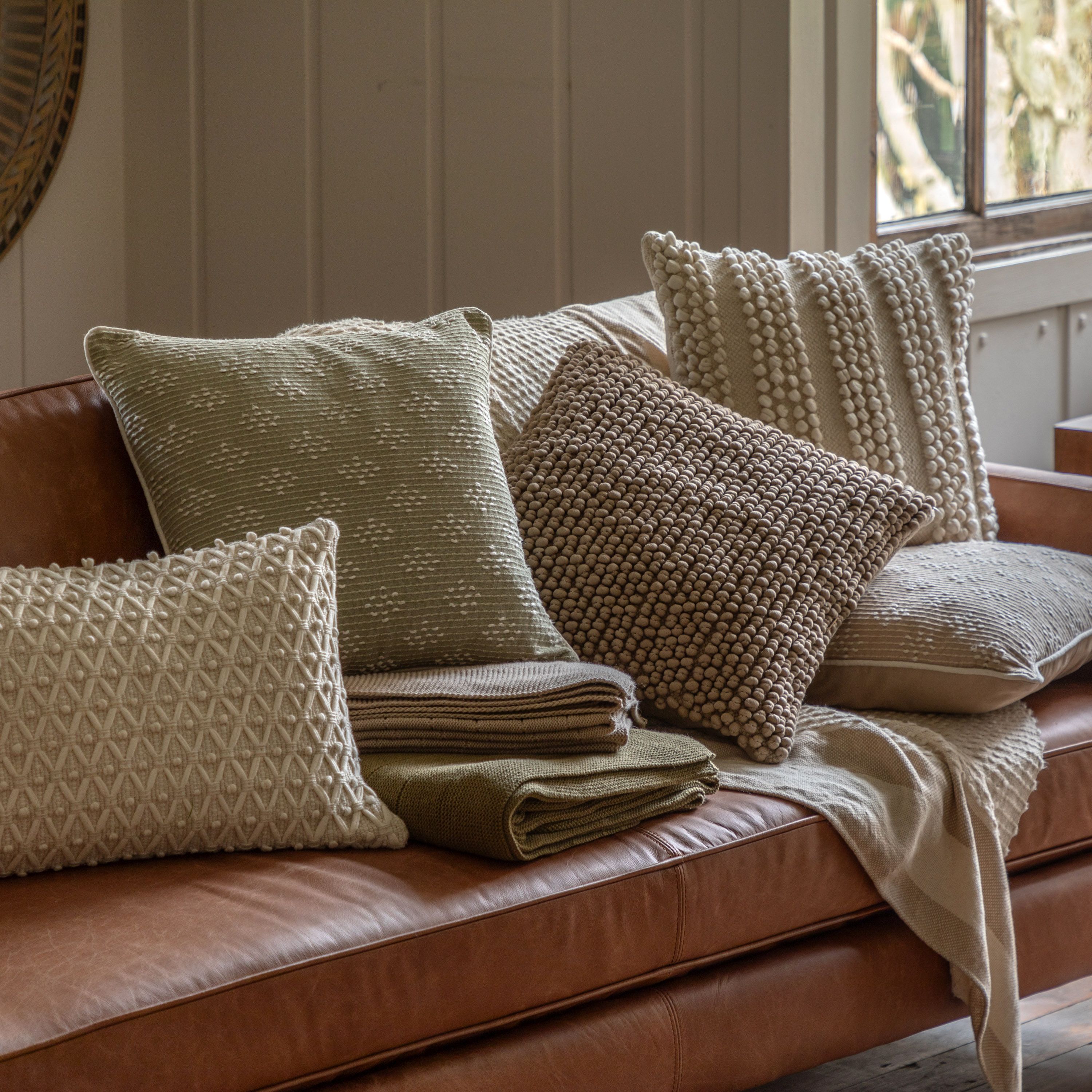 Adorned with a delicate pattern this soft sage toned cushion adds a touch of elegance to your living space. The soft woven fabric and delicate pattern is finished off with a pipped edge, perfect for helping you create an inviting space.