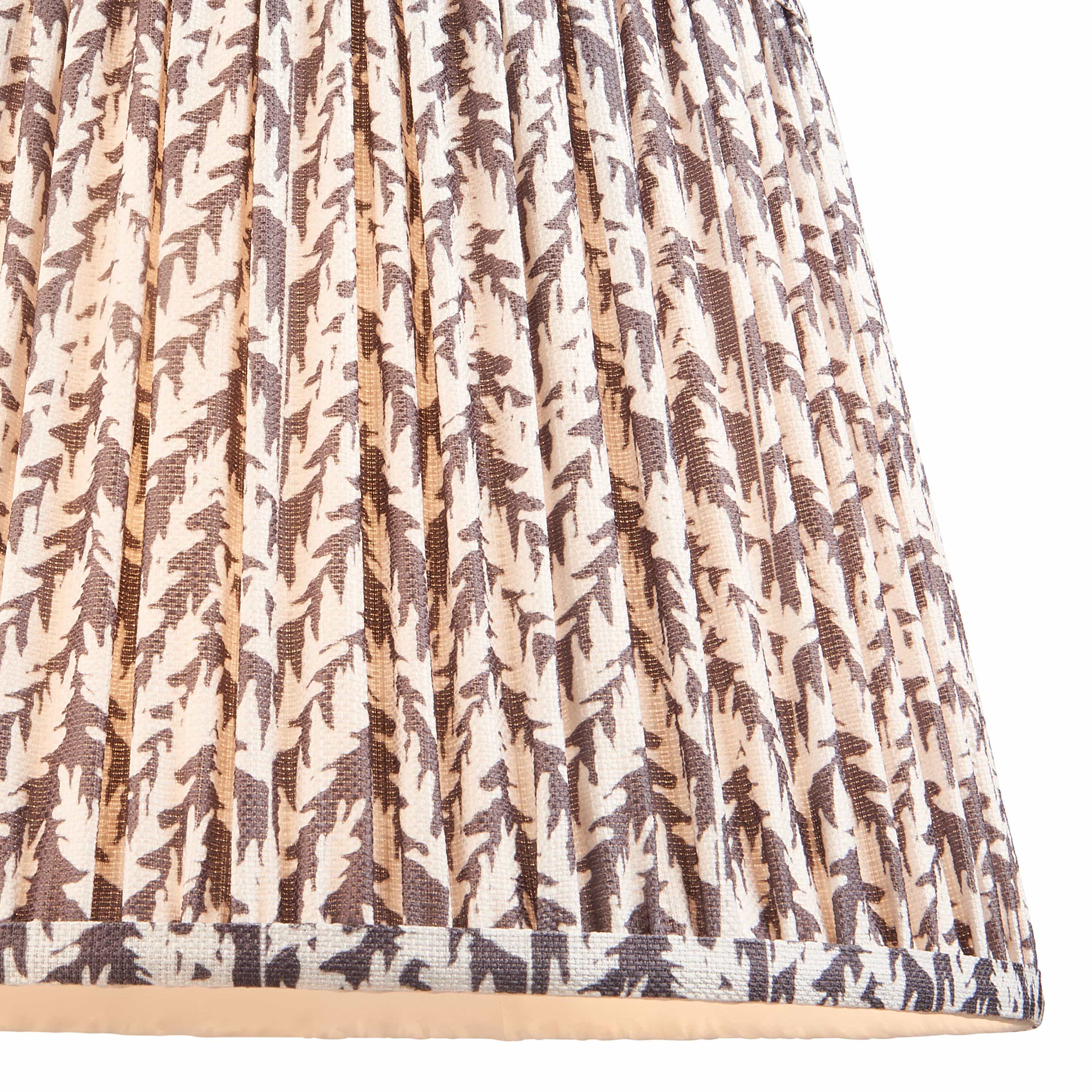Introducing the Leaf Shade Pearl Grey Fabric, a stunning addition to any home decor. This unique shade features a subtle pearl grey color with a beautiful leaf pattern design. The taped edge detailing and plain inner lining add a touch of elegance to this 16cm tapered shade. With a clip gimbal, it can easily fit golf or candle bulbs, making it versatile for any lighting fixture.