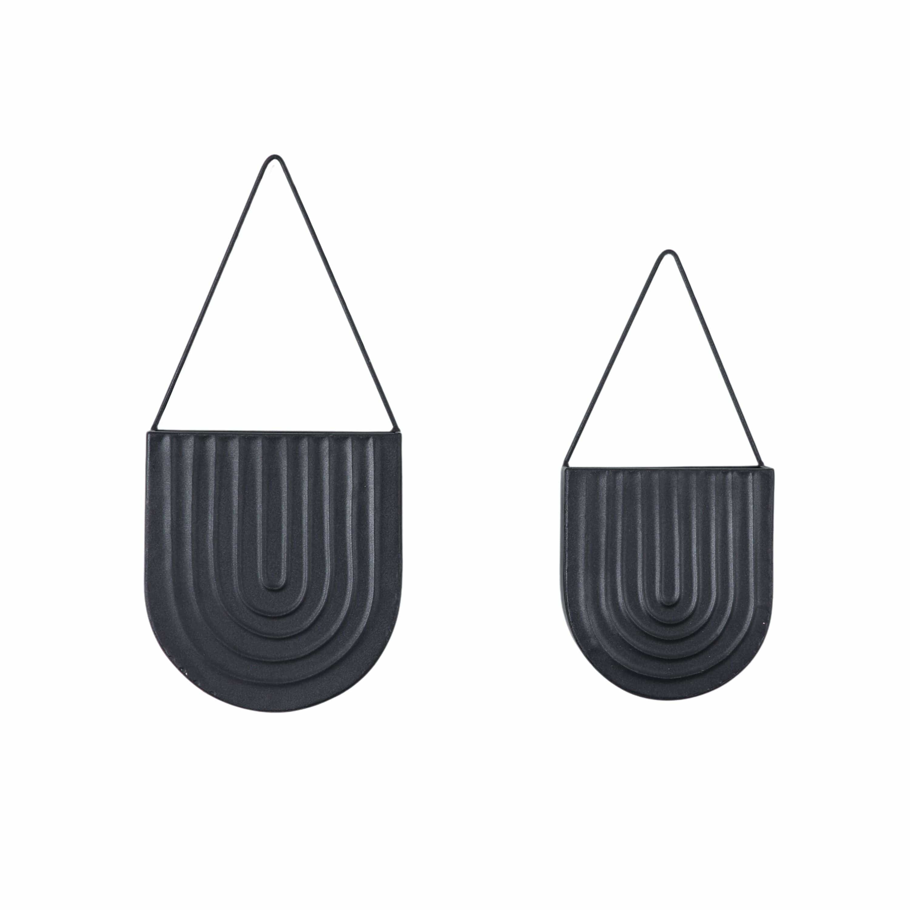 Introducing the Criggan Wall Planter, a set of two unique metal planters with a stunning textured matt black finish. These planters are perfect for both indoor and outdoor use, making them a versatile addition to any home.
