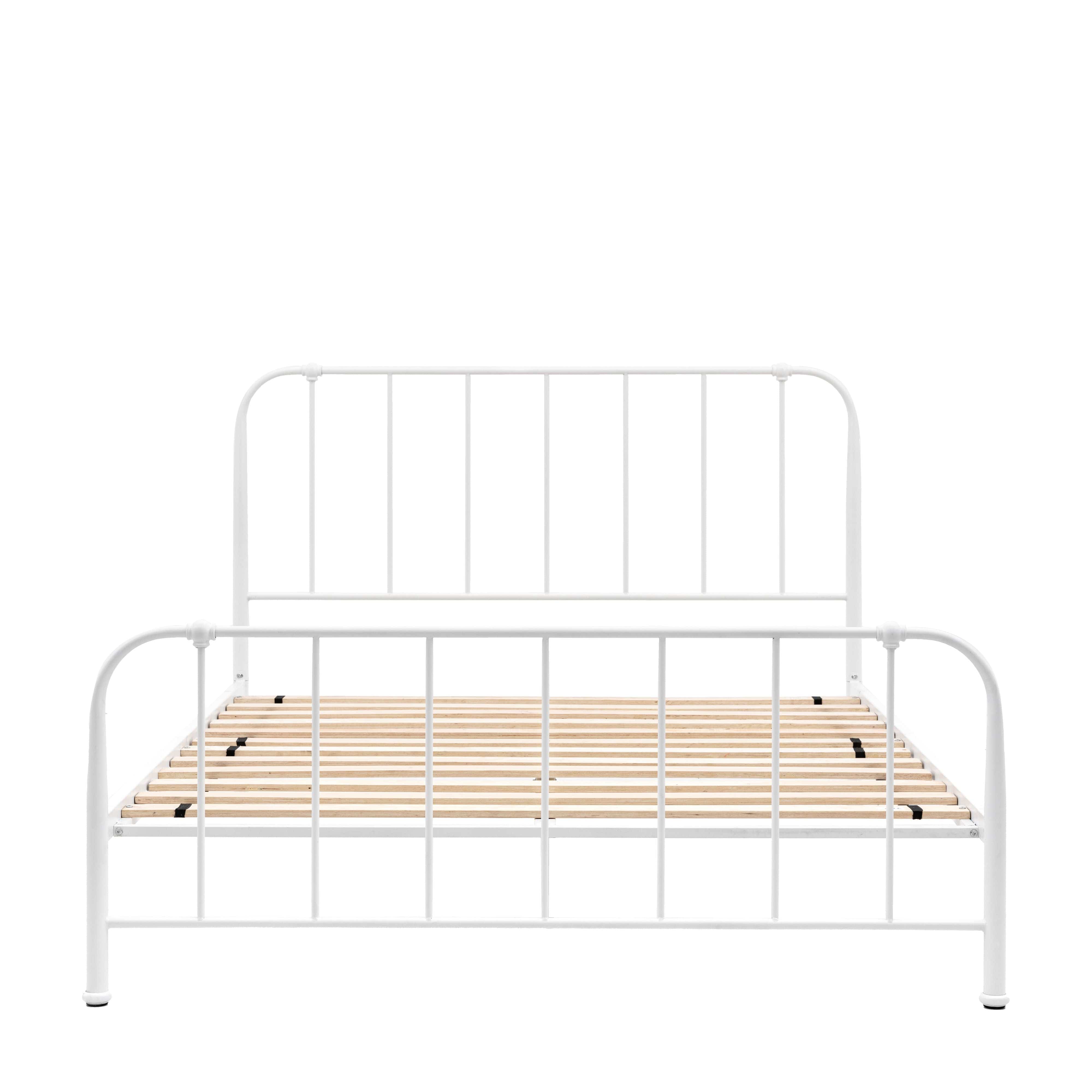 Introducing the Loughton King Bedstead Ivory, a touch of tradition for your bedroom. This black ironwork style bed is inspired by Victorian design and features intricate details for a classic look. Available in white and a variety of sizes, this bed is the perfect addition to any bedroom.