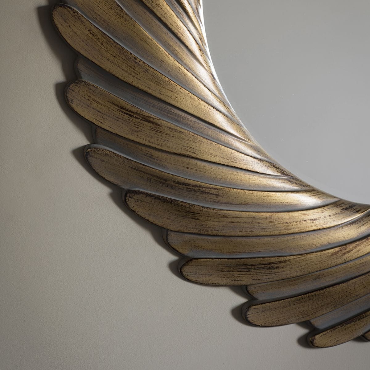 Introducing the Crown Mirror Gold Verdigree, a stunning addition to any home. This uniquely designed mirror features a wide, swirl frame with a bevelled center mirror in a silver finish. The perfect combination of elegance and modern design.