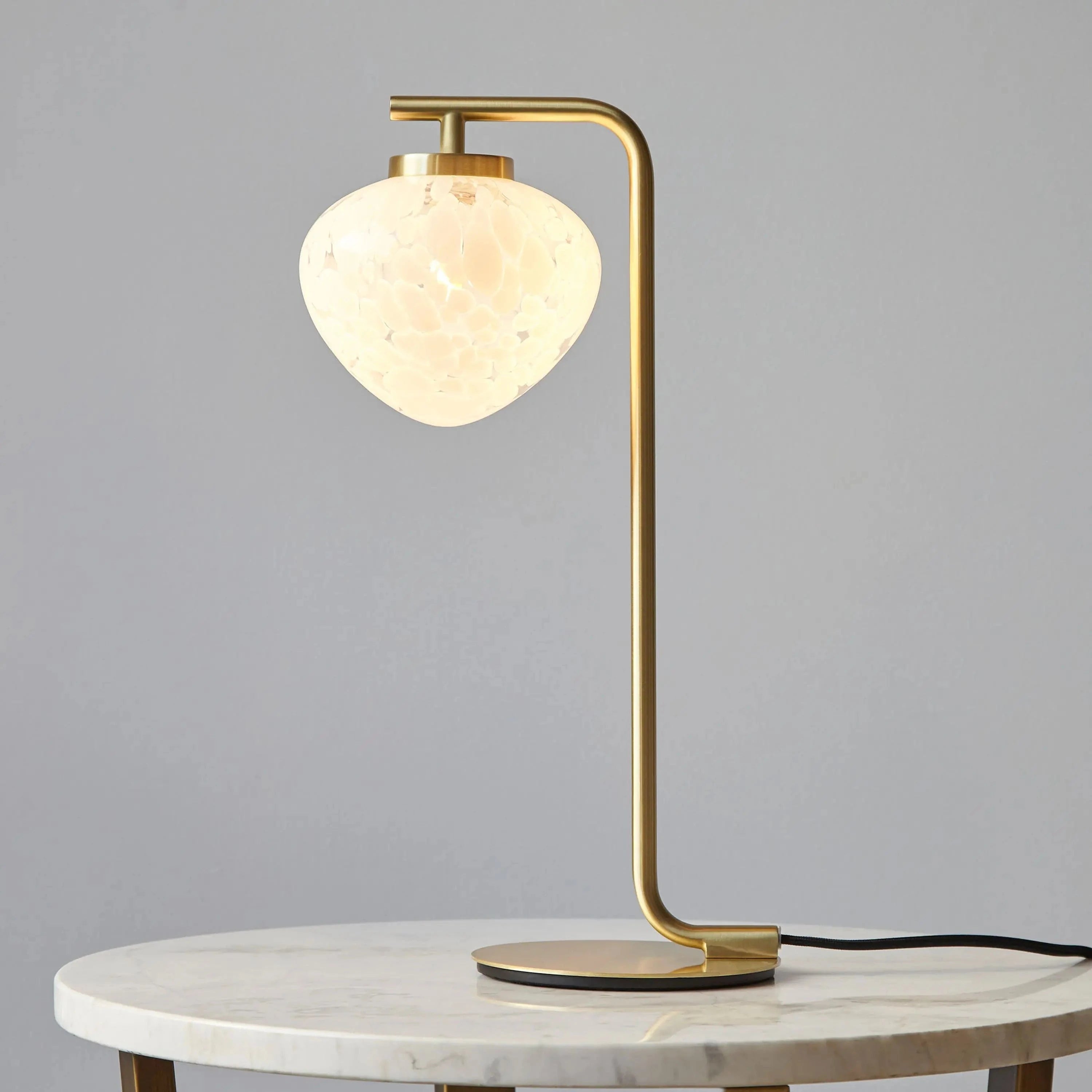Introducing the Bali 1 Table Lamp Satin Brass, a stunning addition to any home. This contemporary light features art deco influences and a simple yet elegant design. The satin brass metalwork perfectly complements the semi translucent white confetti glass shade, creating a solid yet ethereal effect. Complete the look with matching items available.