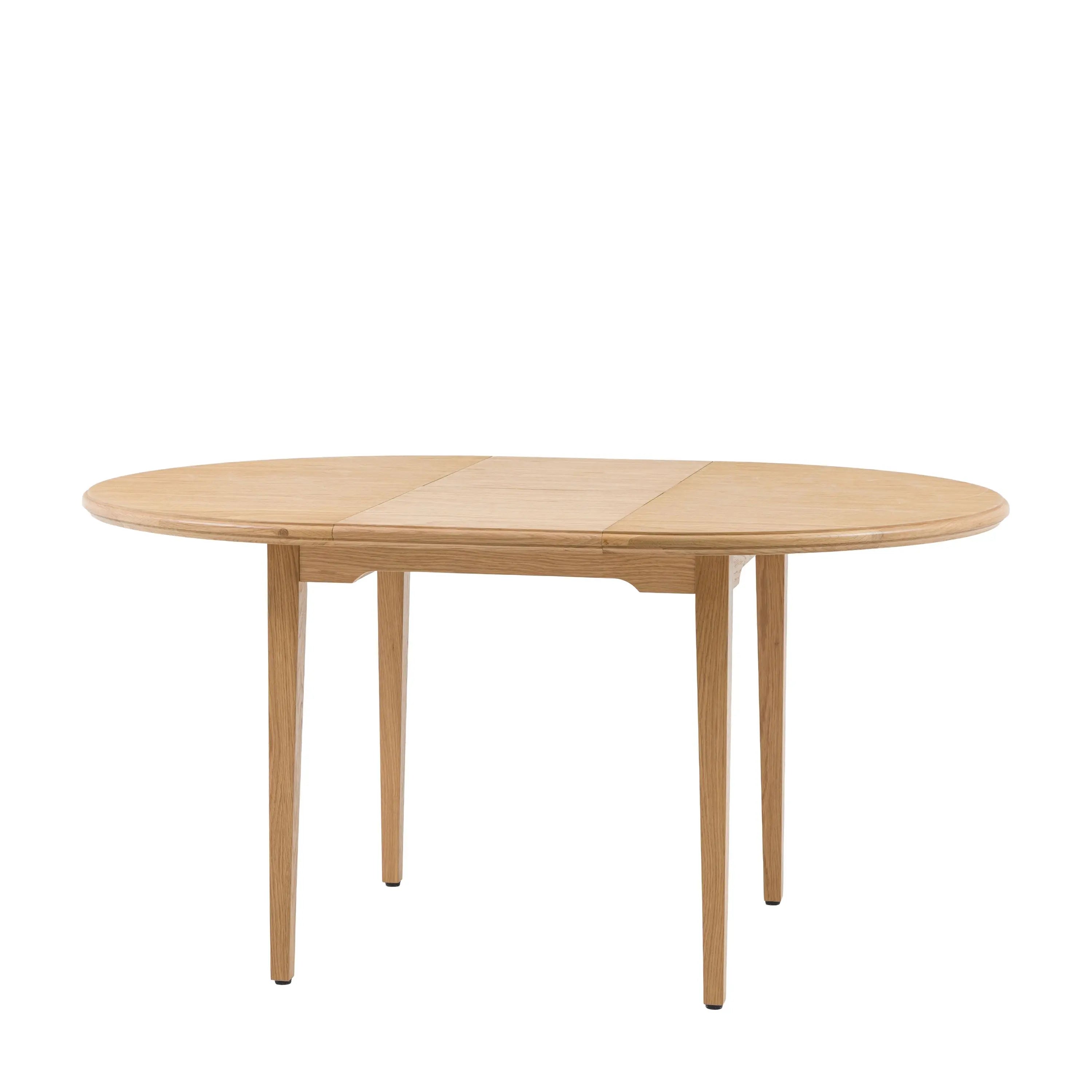 Create a welcoming dining experience with this charming round dining table. The warm oak solids & veneers are full of subtle grain detail, adding classic elegance and bringing an inviting style to any kitchen or dining area. With a clever extendable feature, the table gracefully transitions from intimate family meals to accommodating more guests, seating 4 to 6 people. This table offers both beauty and adaptable functionality.