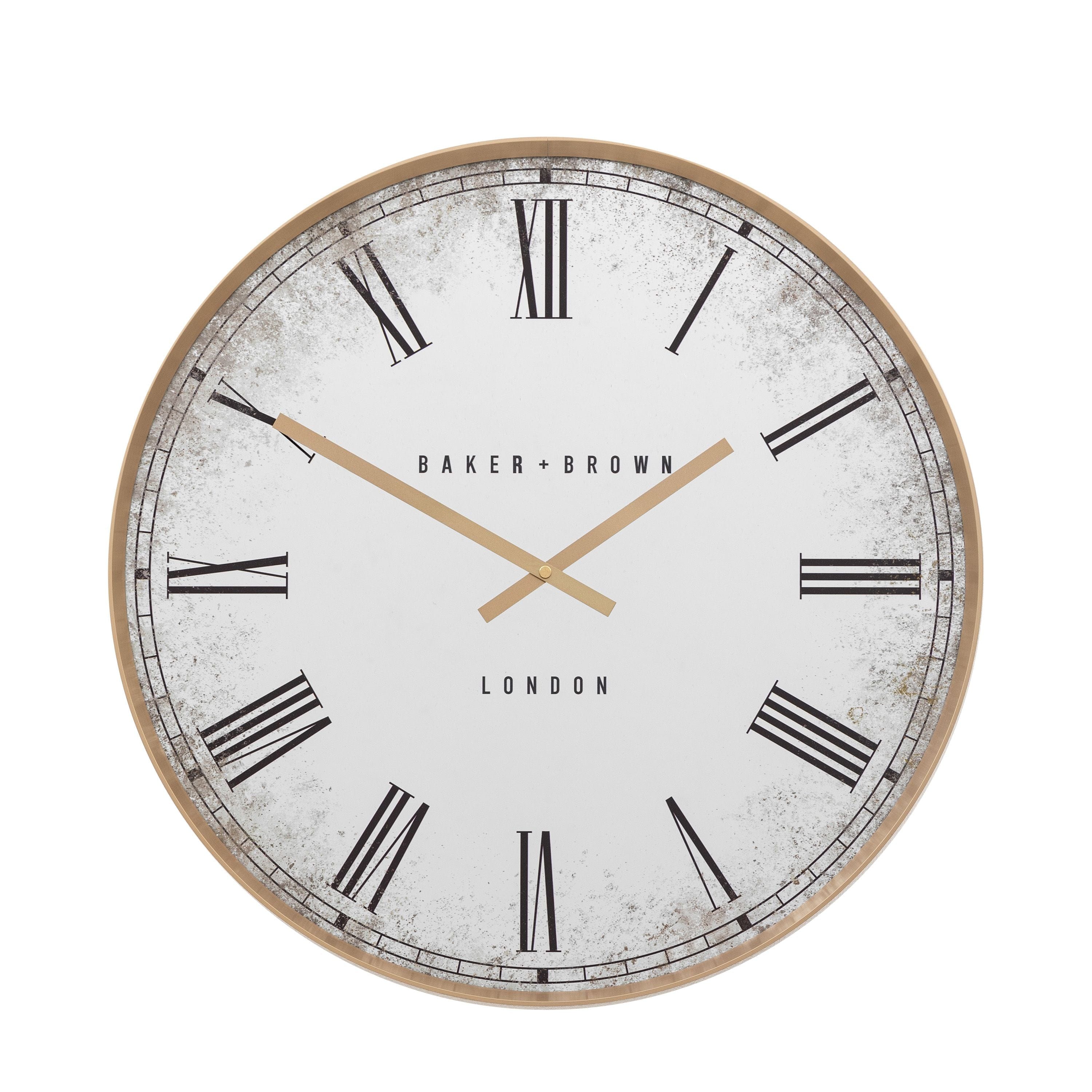 Crafted from high-quality materials such as aluminium, glass, and MDF, this clock is not only visually appealing but also durable and long-lasting. The large, round face features Roman numerals and a distressed finish, adding a touch of vintage charm to any room.