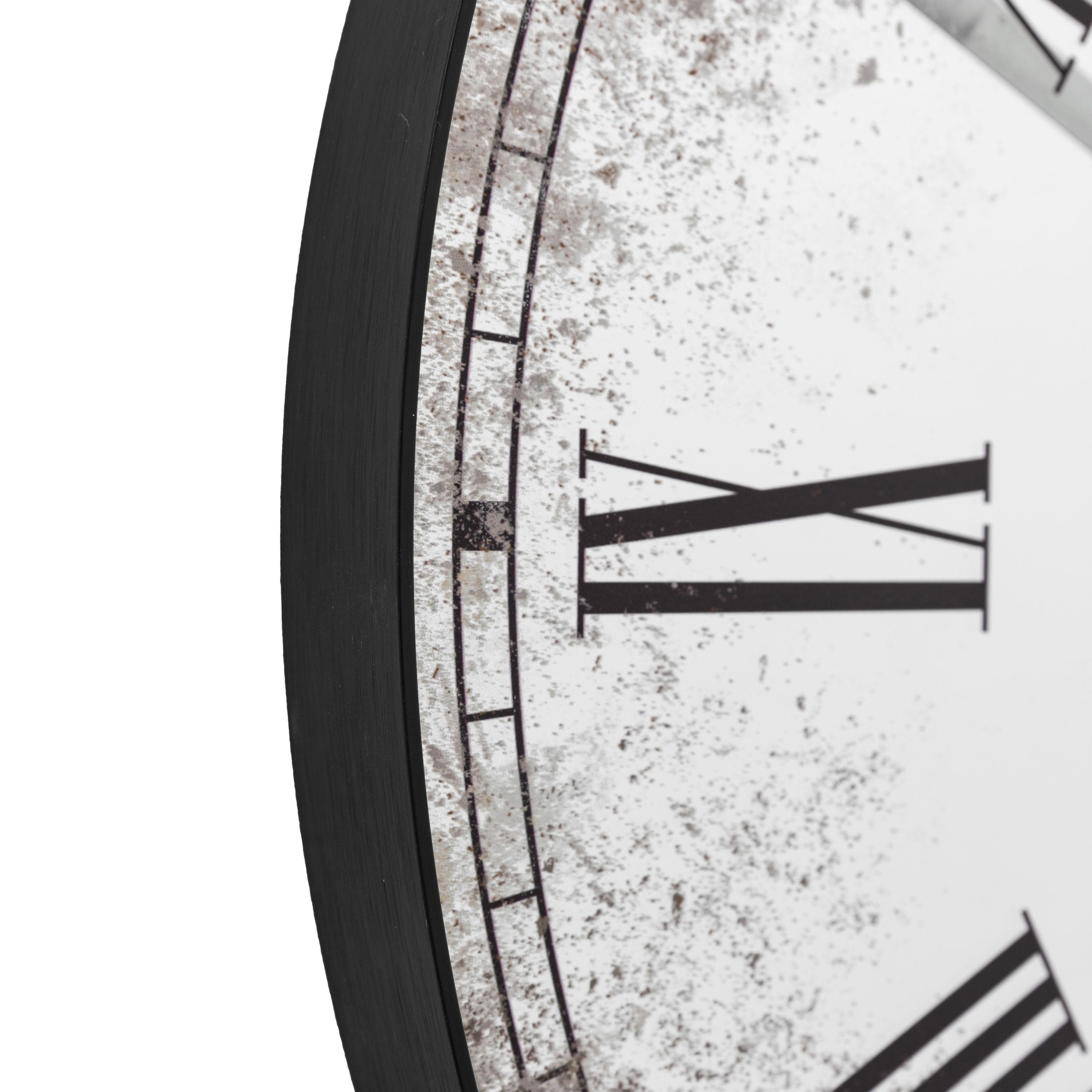 Introducing the Manchester Wall Clock Black, a stunning addition to any home. This timeless piece combines traditional design with a modern twist, featuring a distressed finish and Roman numerals for a touch of vintage charm.