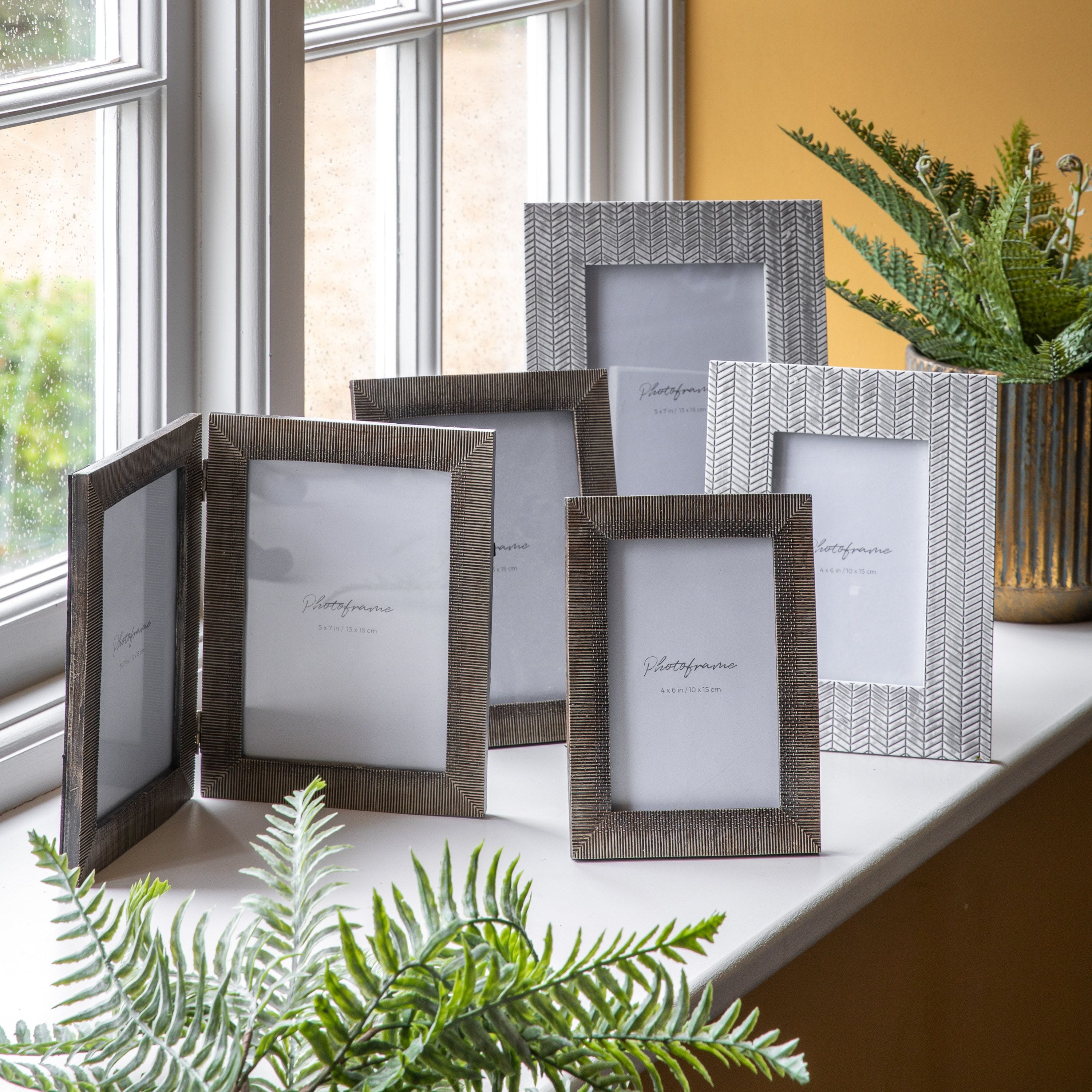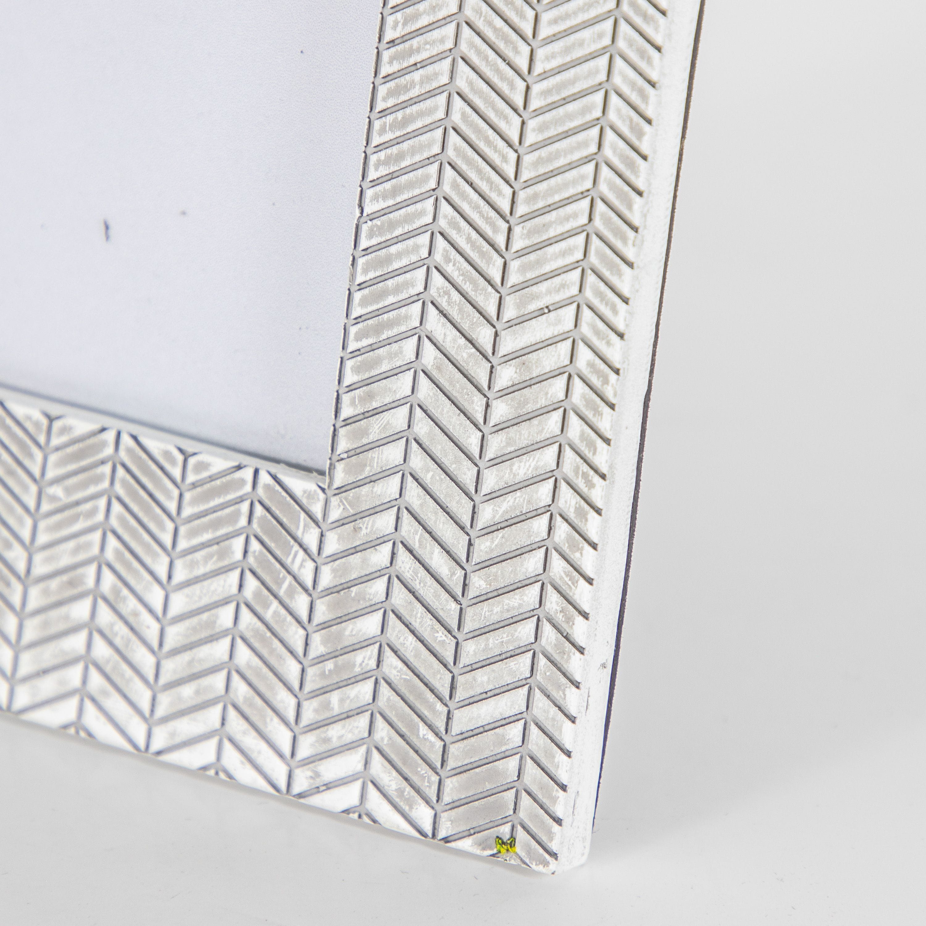 This contemporary Manni Photo Frame is a fantastic option for showcasing your 5x7" photos. The resin frame features a stunning herringbone pattern in stone grey effect.