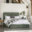 Tonedale 2 Drawer Bedstead 4'6' Green is a stunning addition to any bedroom. Its simple yet elegant design, featuring a lovely green fabric, makes it a versatile piece that can complement a variety of interior styles. The headboard boasts rounded corners and button detailing for a touch of sophistication, while the base offers two drawers for added storage space.