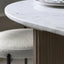 The table is finished in a beautiful grey wash and white color, making it a versatile addition to any dining room. Made from 50% marble and 50% mango wood, it offers both style and durability. With a seating capacity of 6-8 people, it is perfect for hosting guests. Assembly is required for the legs and feet only, making it quick and easy to set up.