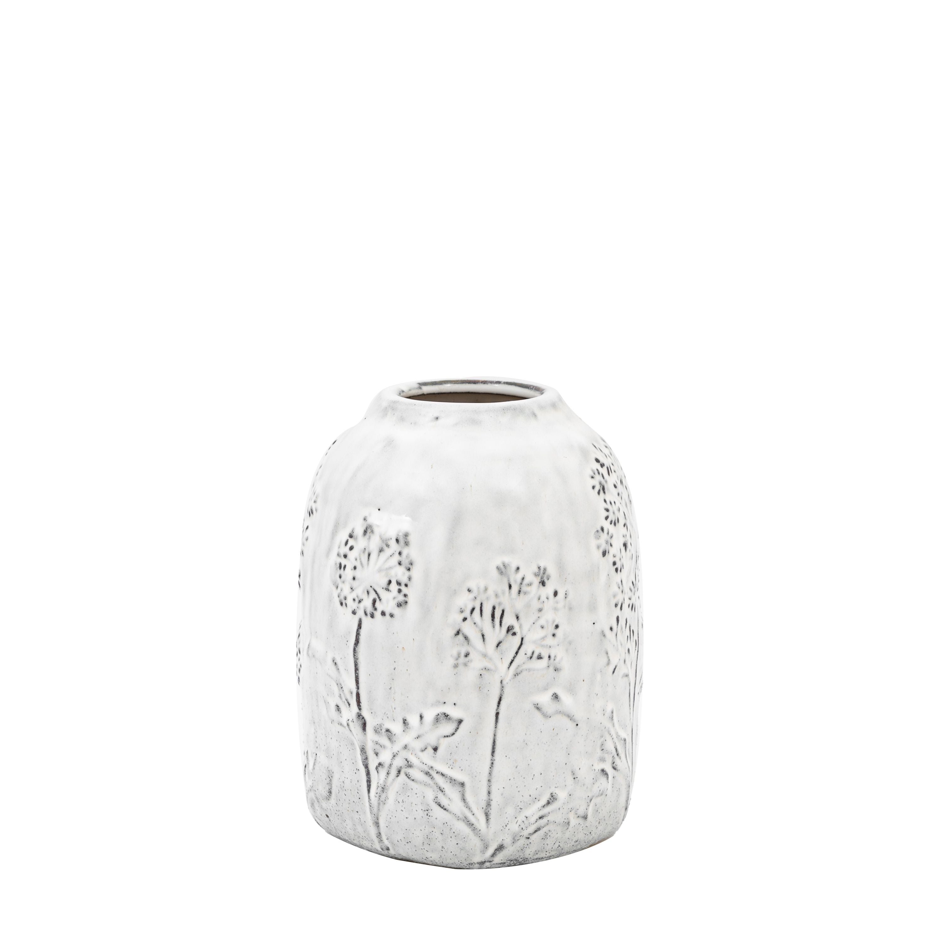 Perfectly capturing the feeling of springtime, this pretty vase will let you bring the meadow indoors. Covered in embossed wildflowers, highlighted by a pale grey glaze, this vase will show off your flowers to their very best.