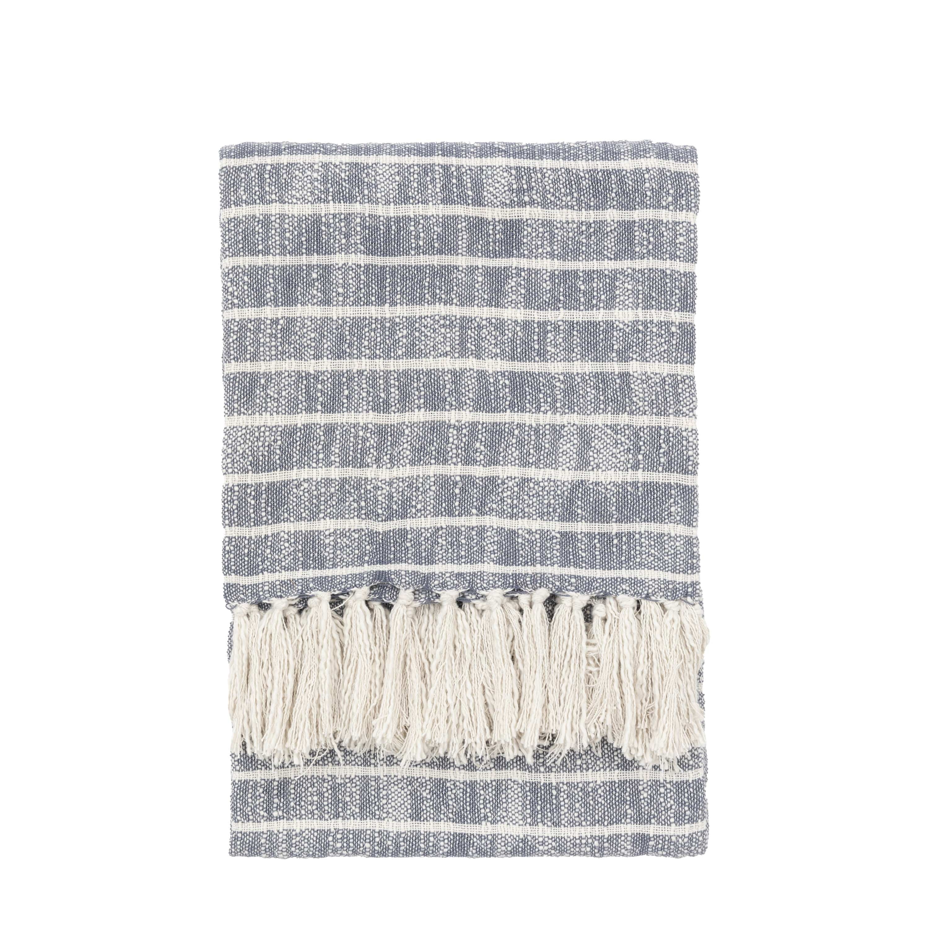 Soft and warm this cosy striped throw in blue & white is woven with comfort and finished off with 4 soft tassels. Perfect for adding a cosy feel to any room.