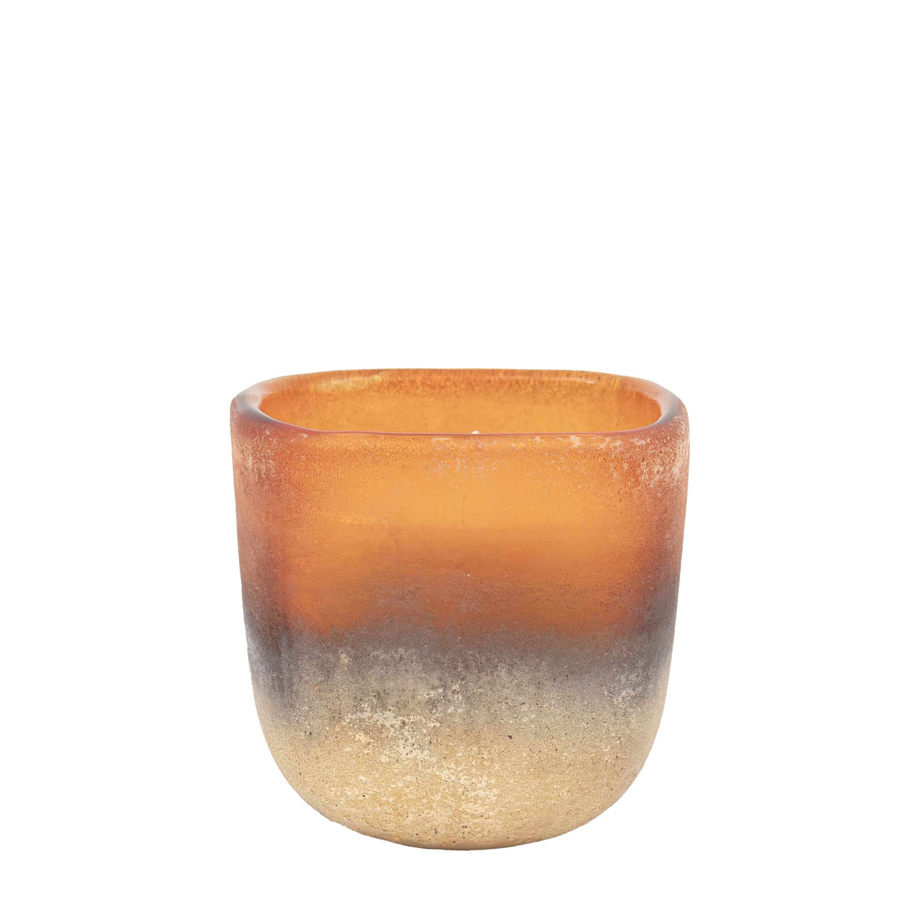 Create an inviting ambiance with a fragrance of woody and sweet floral scents with this stunning Jasmin and Vetiver candle. The stunning hand blown glass in warm amber tones is finished with a metallic base, bringing a cosy handmade feel to your interior. The candle benefits from a 46 hour burn time, for long term enjoyment.