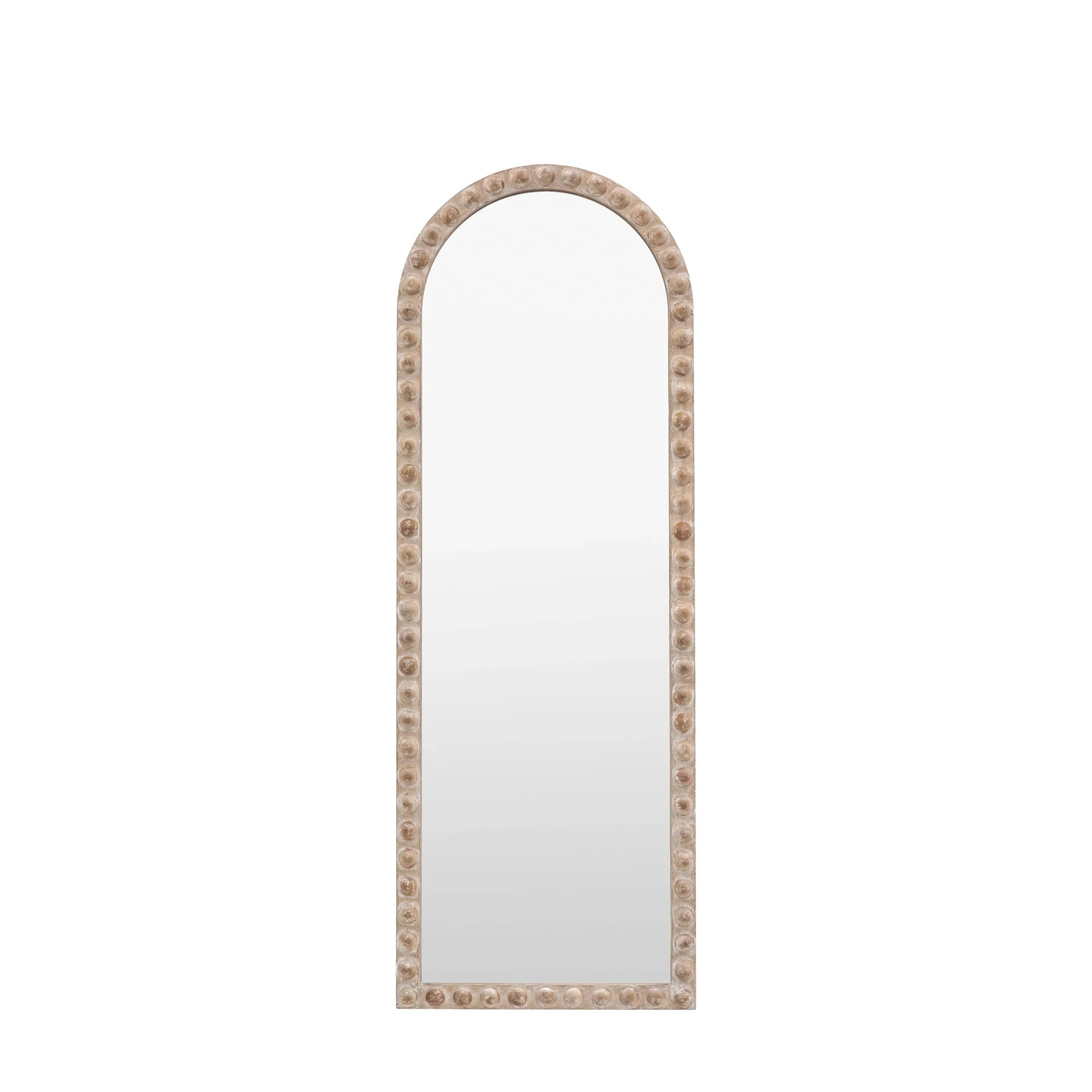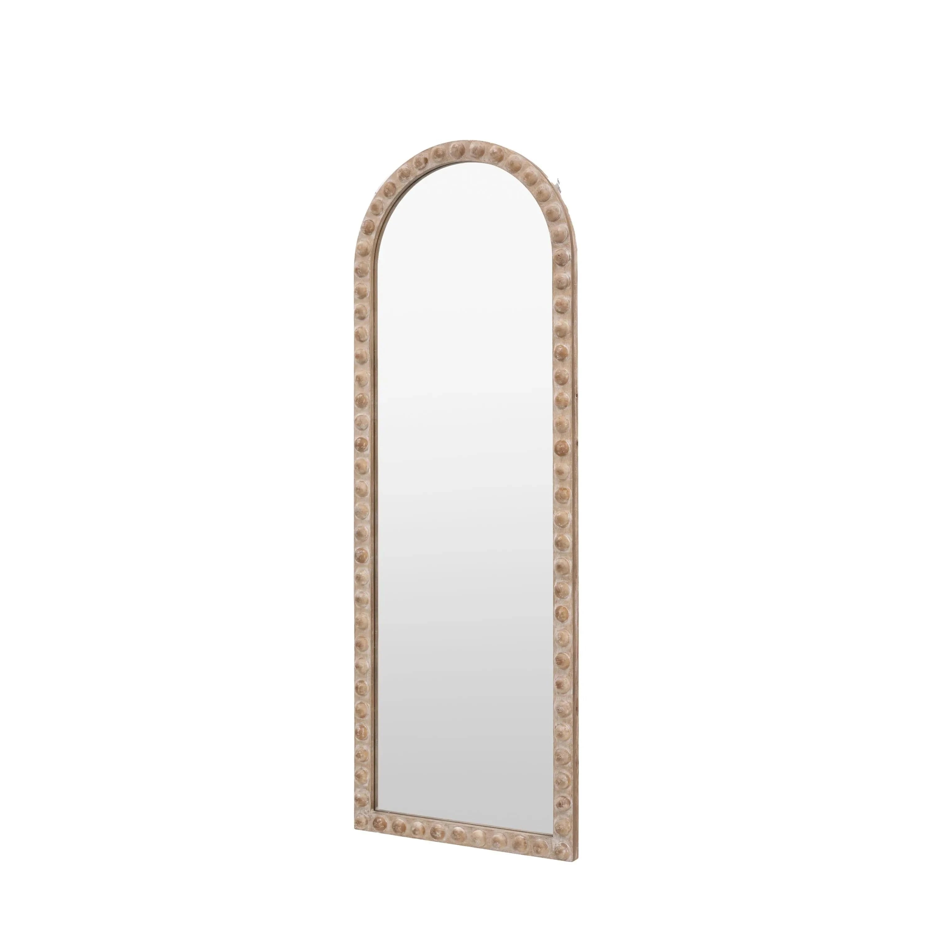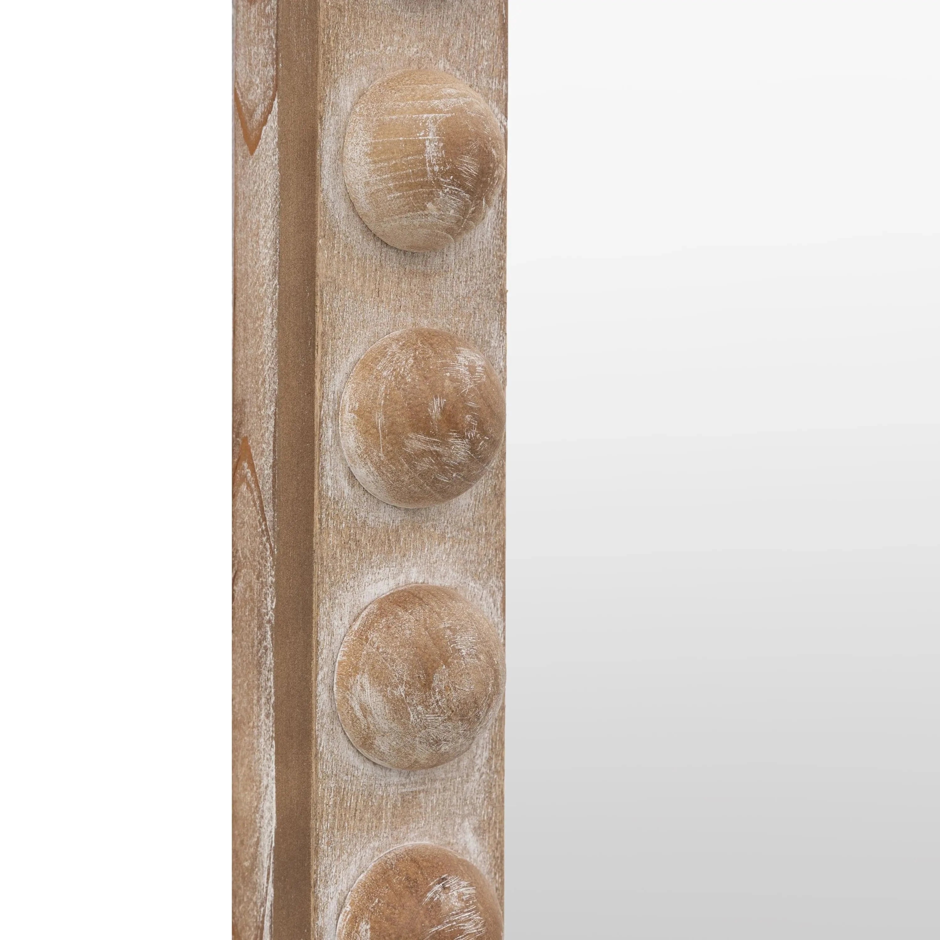 Bring rustic contemporary elegance to your home with our wooden leaner mirror, featuring a gracefully arching top and 3D wooden Bobs detail. The classic arch design adds a touch of architectural sophistication, while the intricately crafted Bobss provide a delightful, textured detail. The warm wood finish complements various decor styles, making this mirror a versatile addition to your living room, bedroom, or hallway. Leaned against a wall or used as a striking focal point, it not only reflects your space but also infuses it with classic, refined charm.