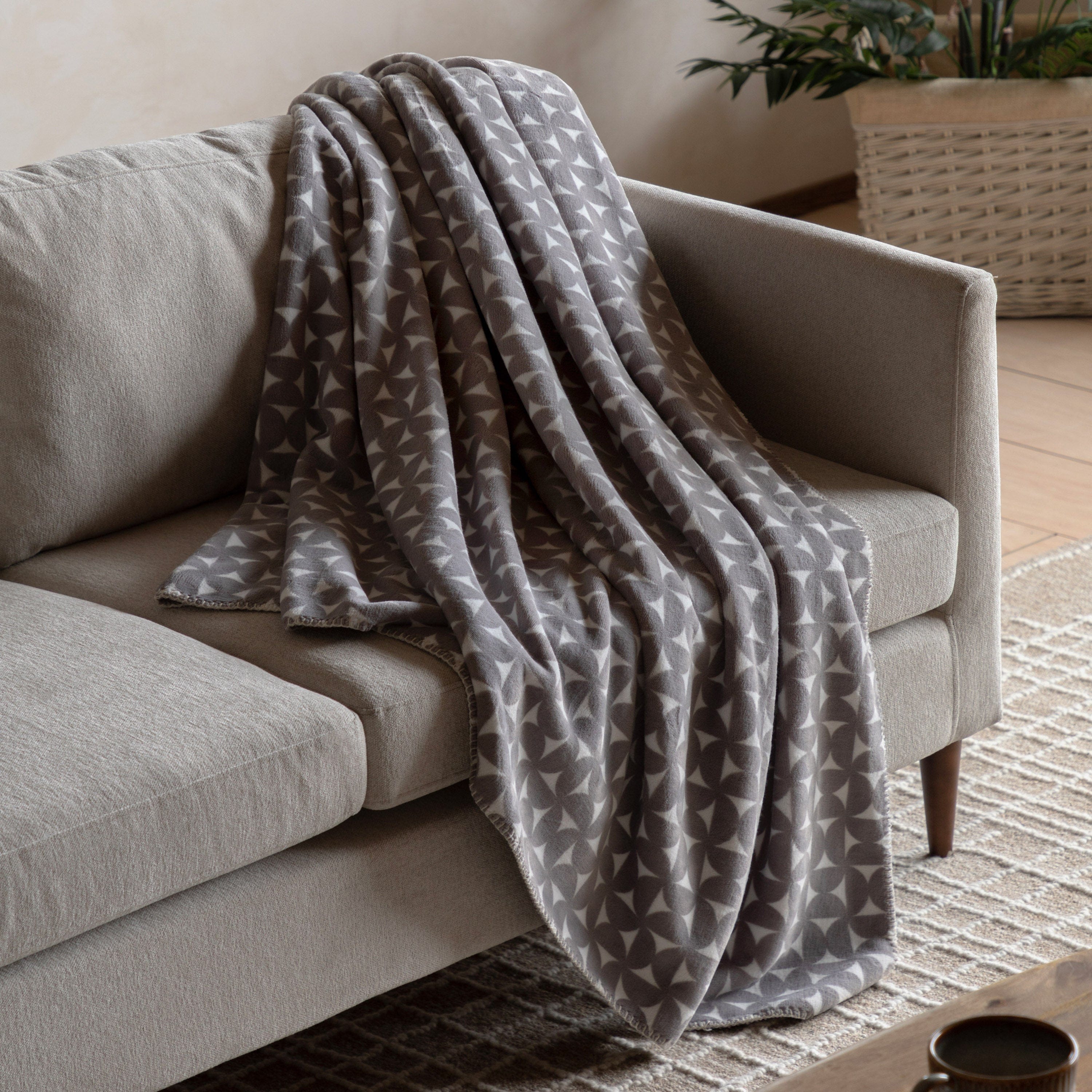 Get cosy in style with this modern patterned throw. Made of soft fleece, the throw's catching geometric pattern adds on trend style and cosy warmth to an interior.