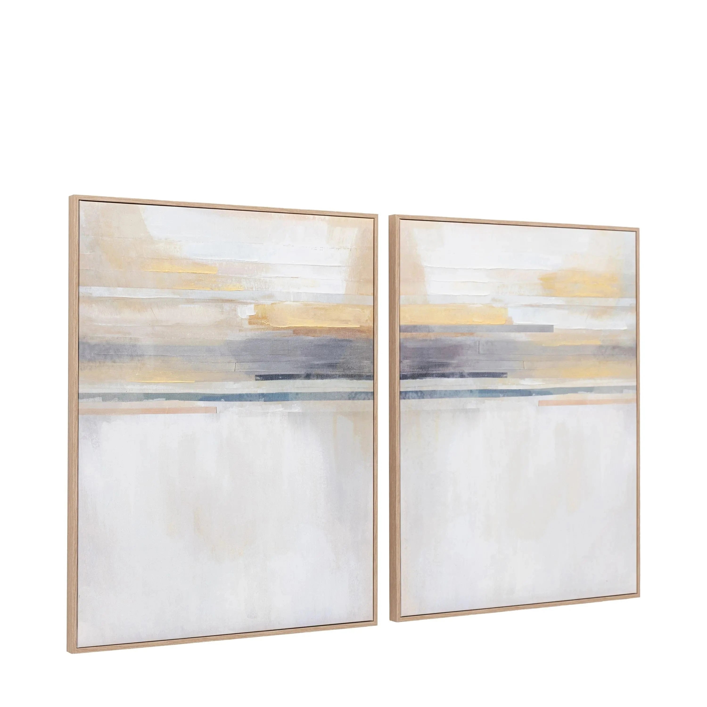 Escape to the serenity of a coastal sunset with the Modern Sunset Framed Canvas Set of 2 from House of Isabella. This set of two canvases captures the essence of a tranquil evening with soft, flowing hues of orange, pink, and blue blending seamlessly to create a mesmerizing horizon. Details: Colour: Multicoloured Material: MDF / PS Frame / Canvas Product Zone: Indoor Hanging Orientation: Portrait Glass Type: Plain Frame Colour: Light wood Fixing Type: Sawtooth Anti Topple Kit Included: No Dimensions: Item Width: 700 mm Item Depth: 30 mm Item Height: 900 mm Packaged Length: 80 mm Packaged Width: 960 mm Packaged Height: 770 mm House of Isabella offers luxurious furniture and interiors with free UK delivery. Experience the beauty and tranquility of a coastal sunset in your own home with the Modern Sunset Framed Canvas Set of 2. With fast delivery and high-quality materials, this set is the perfect addition to any indoor space.