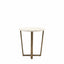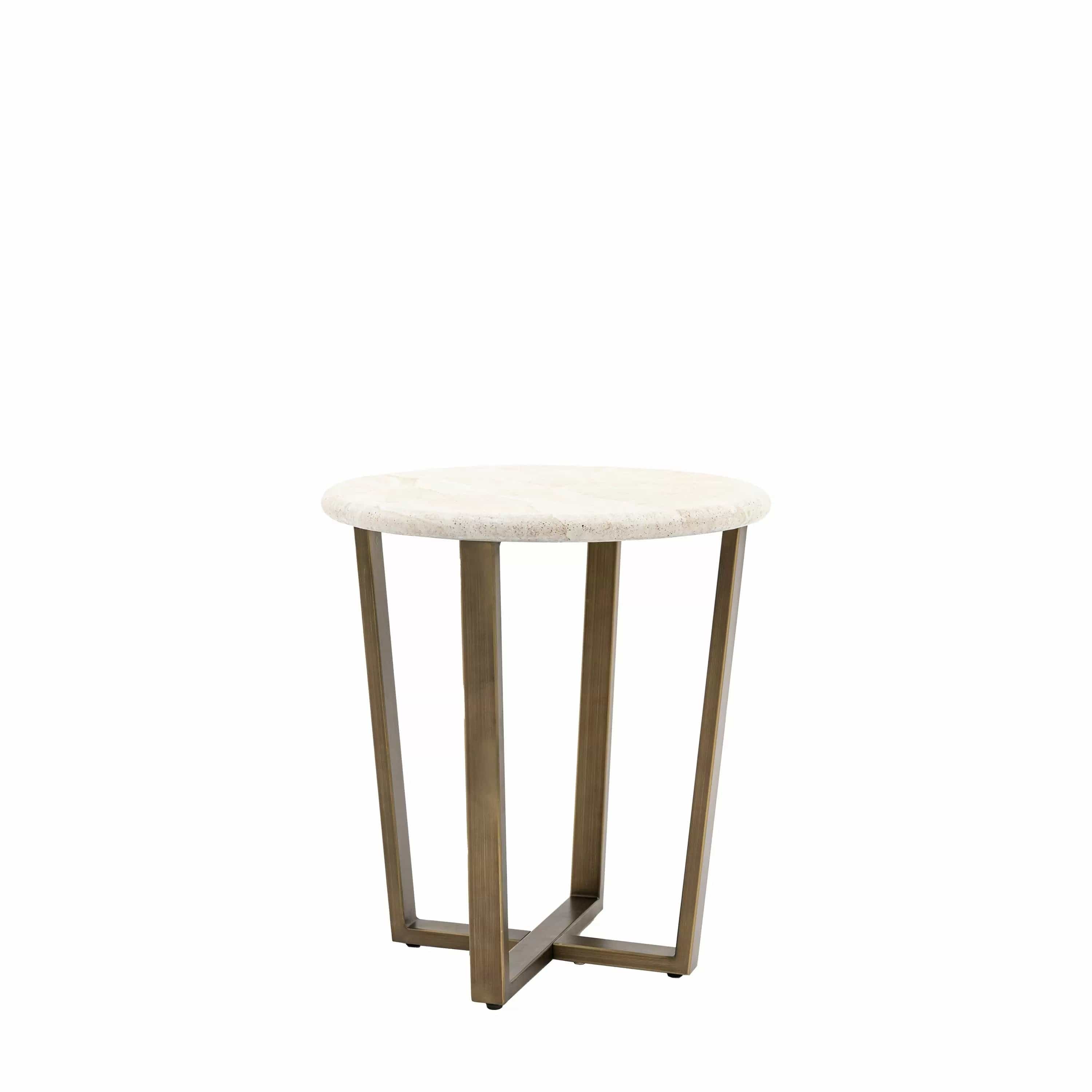 This lovely side table will add a touch of sophisticated elegance to a room. The top features the most amazing travertine faux finish which is created with the latest state of the art technology to give the look and feel of the real thing but without the weight and technical difficulties. The faux travertine is perfectly complemented by the metal base which has a classy bronzed brass finish, to give an understated luxury style, perfect for any classic modern interior. Matching items also available.