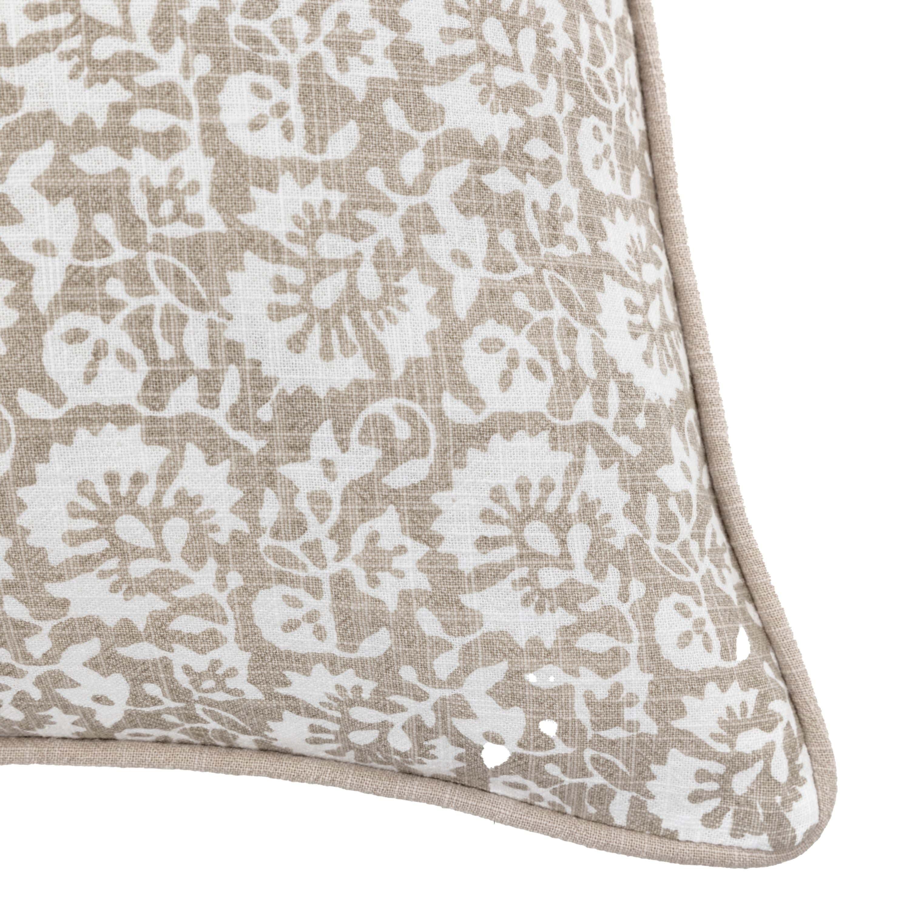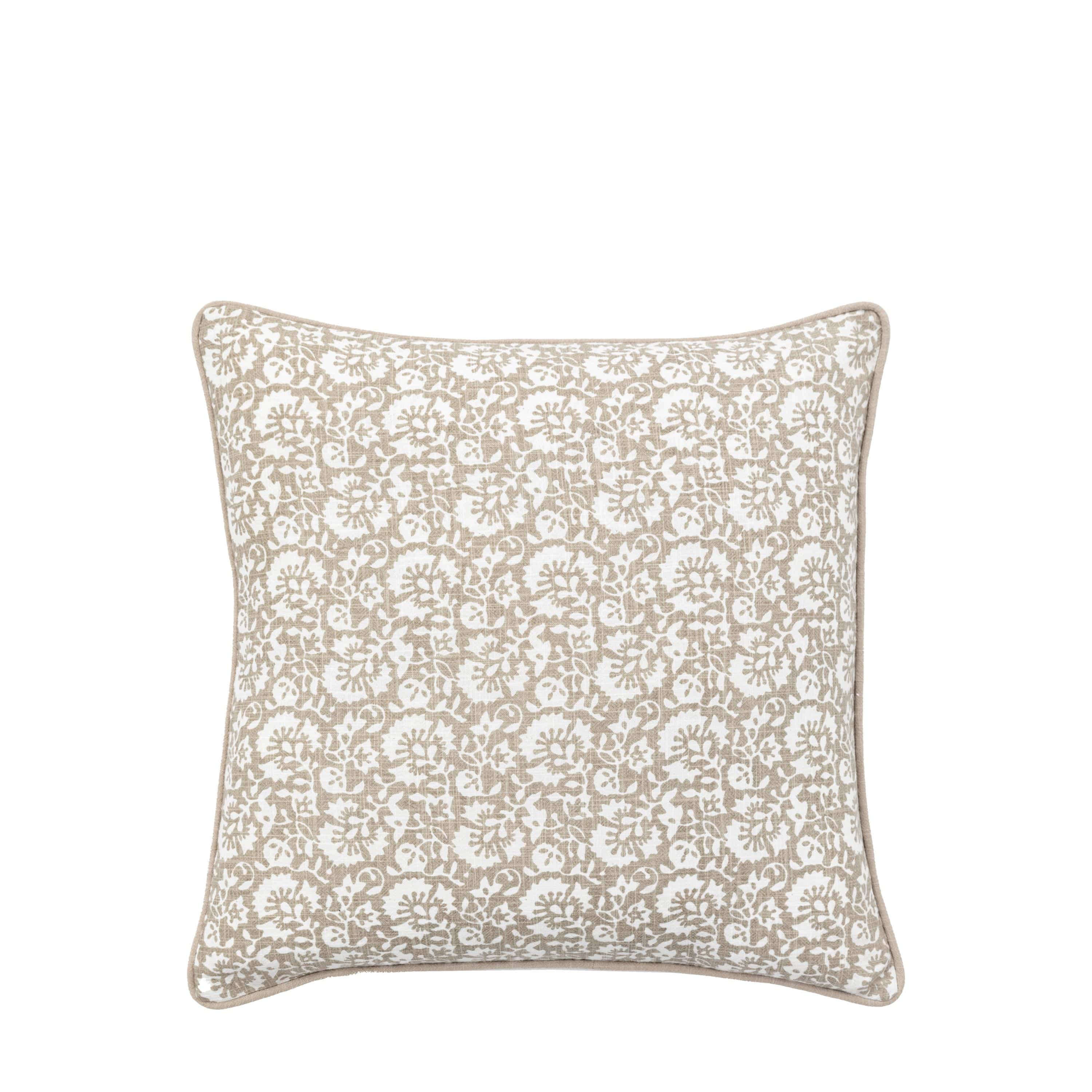 With a soft sage tone, floral print and pipped edging this cushion is an elegant addition to any room.