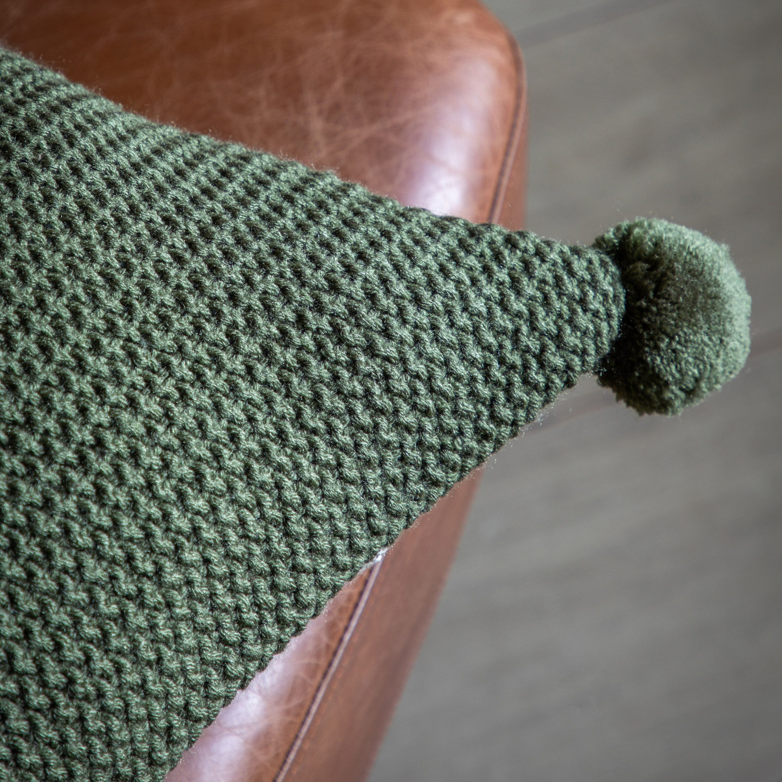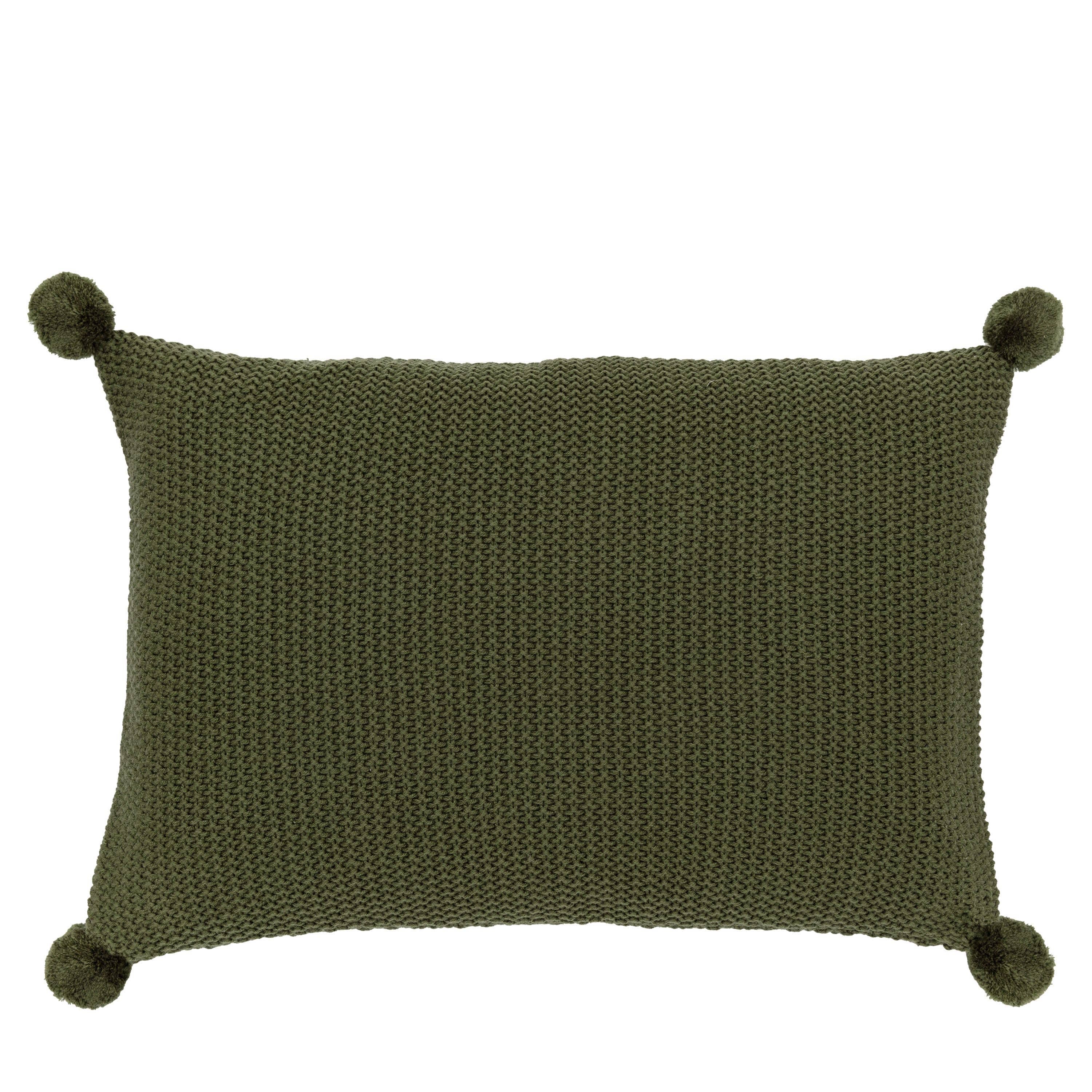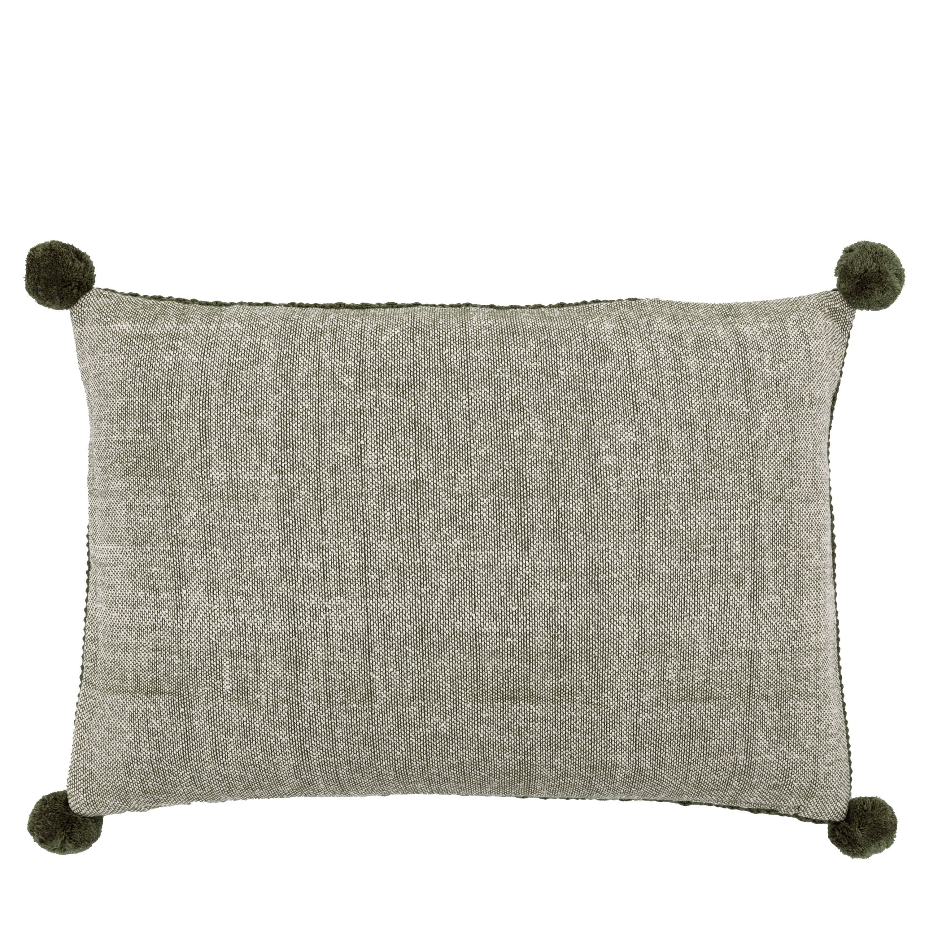 Moss Stitched PomPom Cushion Olive