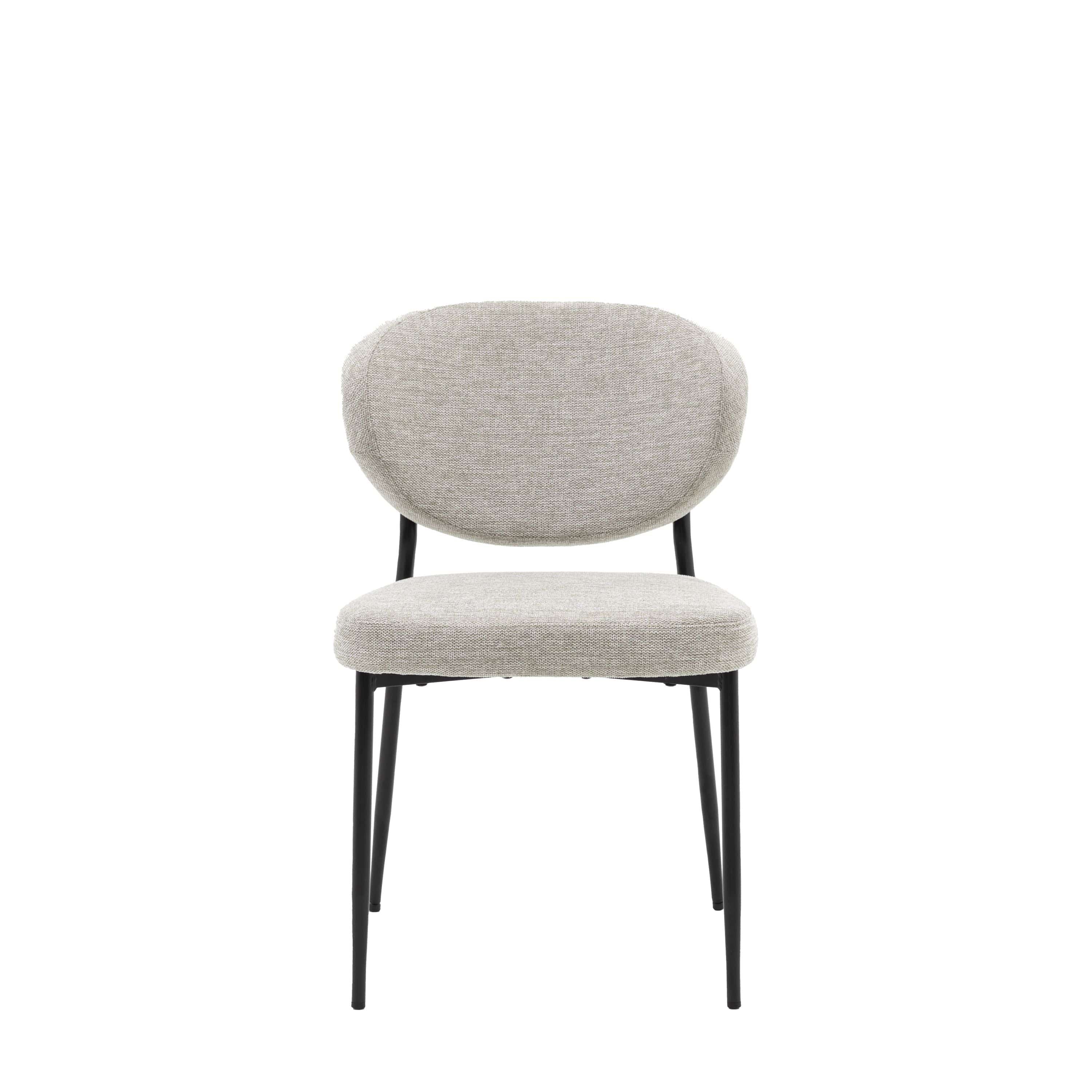 Introducing the Moto Dining Chair Natural 2pk, the perfect combination of style and comfort for your dining space. With its unique oval-shaped backrest and sleek black metal legs, this chair adds a modern and eye-catching touch to any room. The soft, upholstered seat provides both comfort and sophistication, while the natural fabric adds a touch of elegance.
