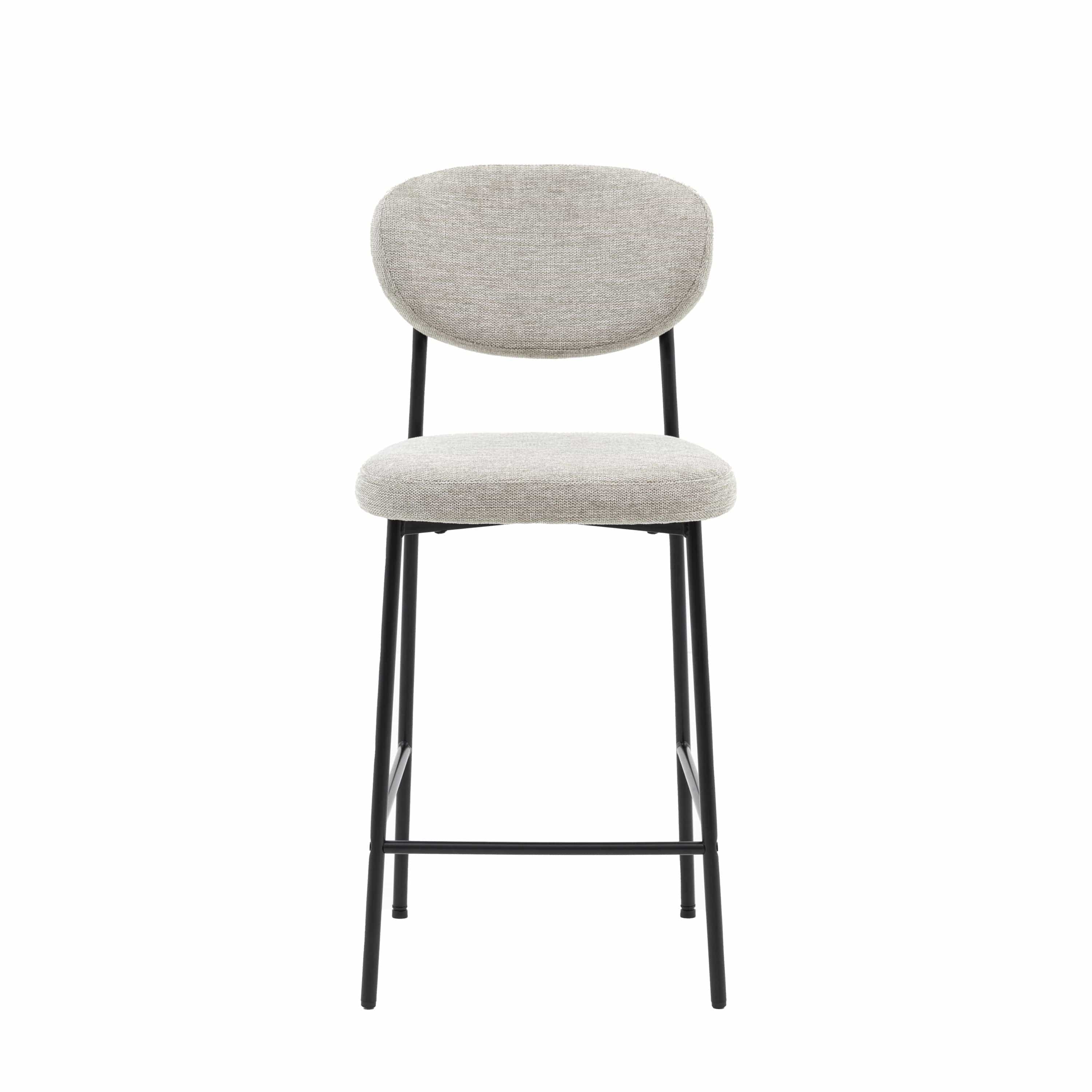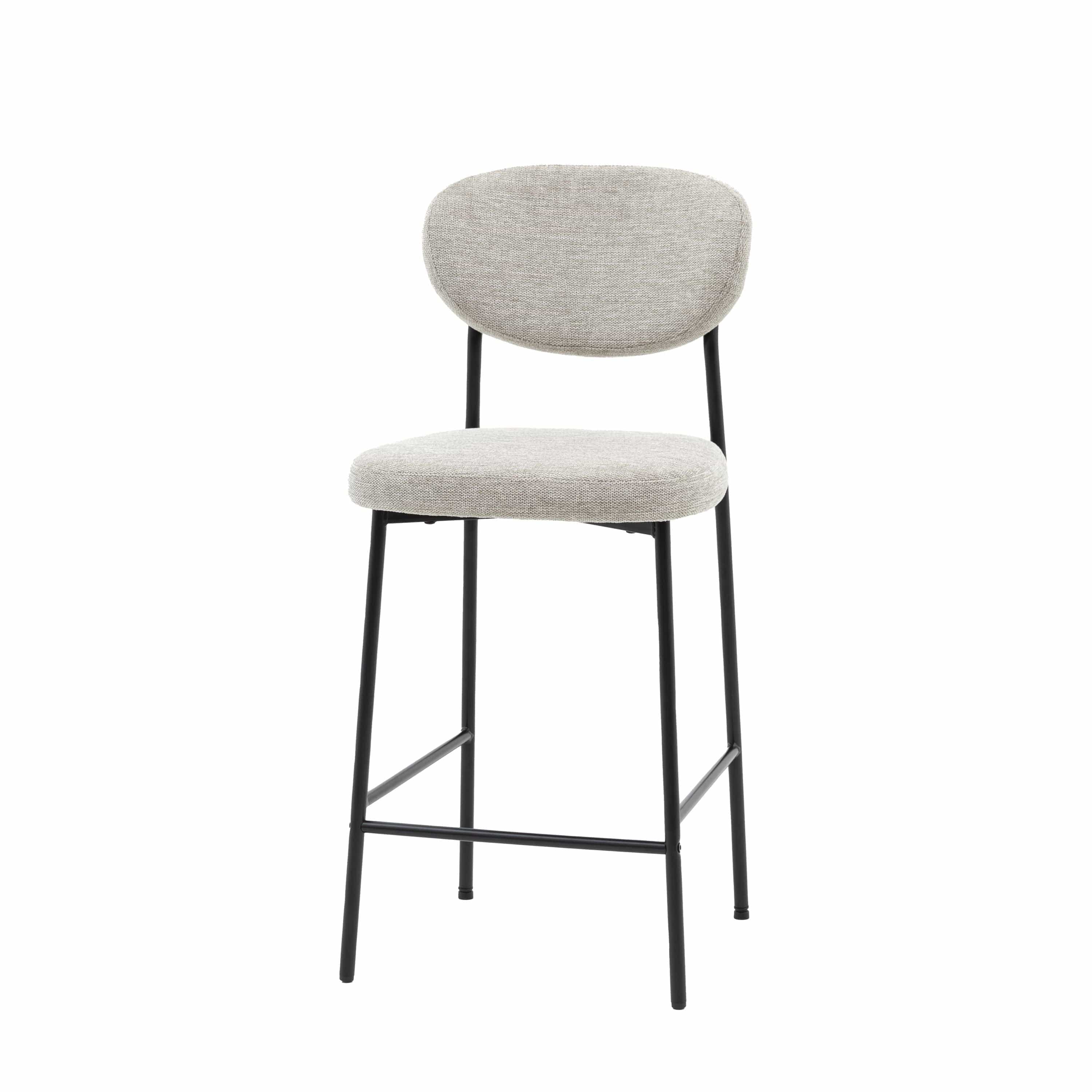 This dining chair is a stylish and comfortable addition to any bar counter or kitchen island. Its unique oval-shaped backrest and sleek black metal legs create a modern and eye-catching look. The soft, upholstered seat provides comfort and style, while the natural fabric adds a touch of sophistication.
