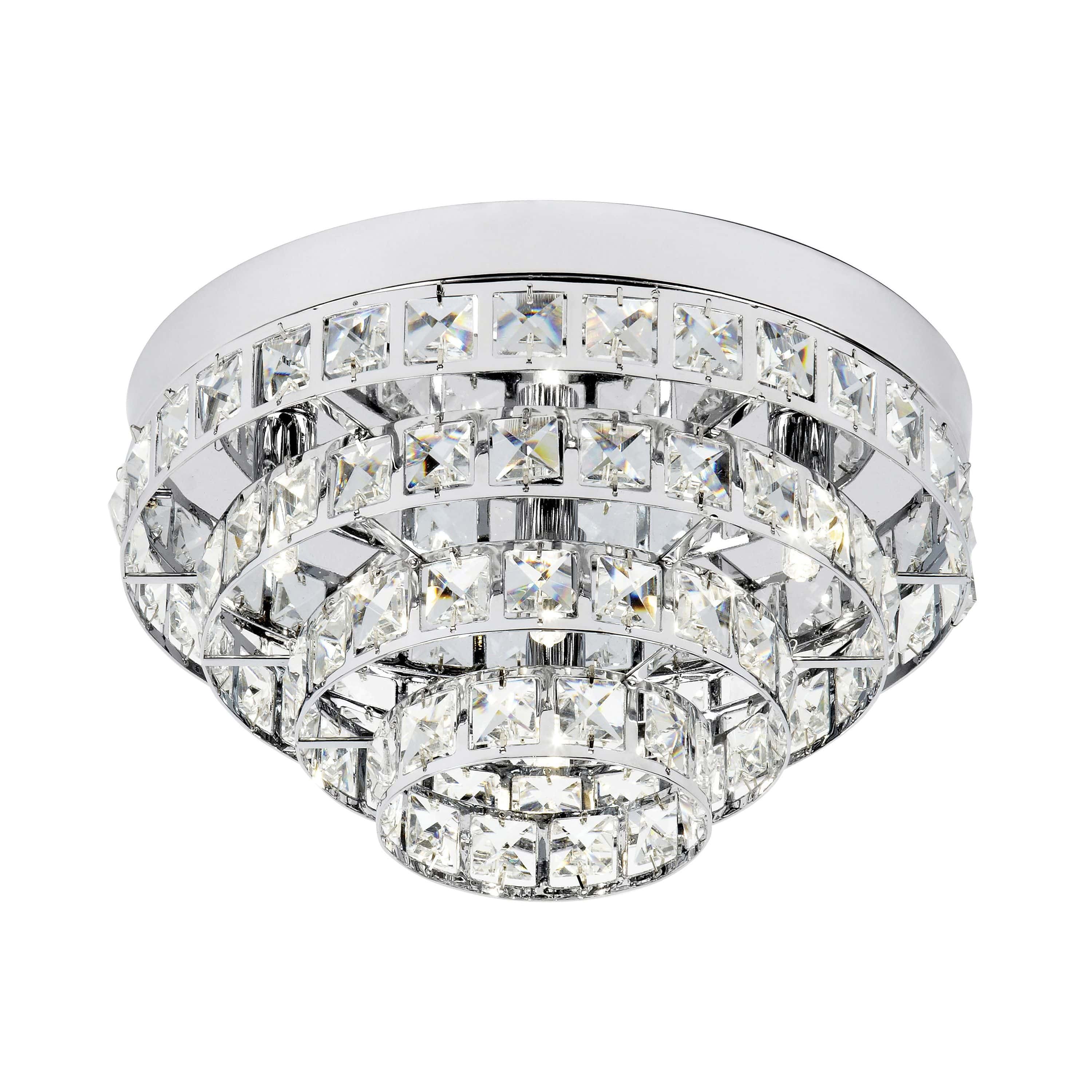 This lamp is also dimmable and suitable for use with LED lamps, making it a versatile choice for any lighting needs. With a product width and depth of 300mm and a height of 165mm, it is perfect for low ceilings. The chrome finish adds a touch of modernity, while the crystal glass and steel materials ensure durability and quality.