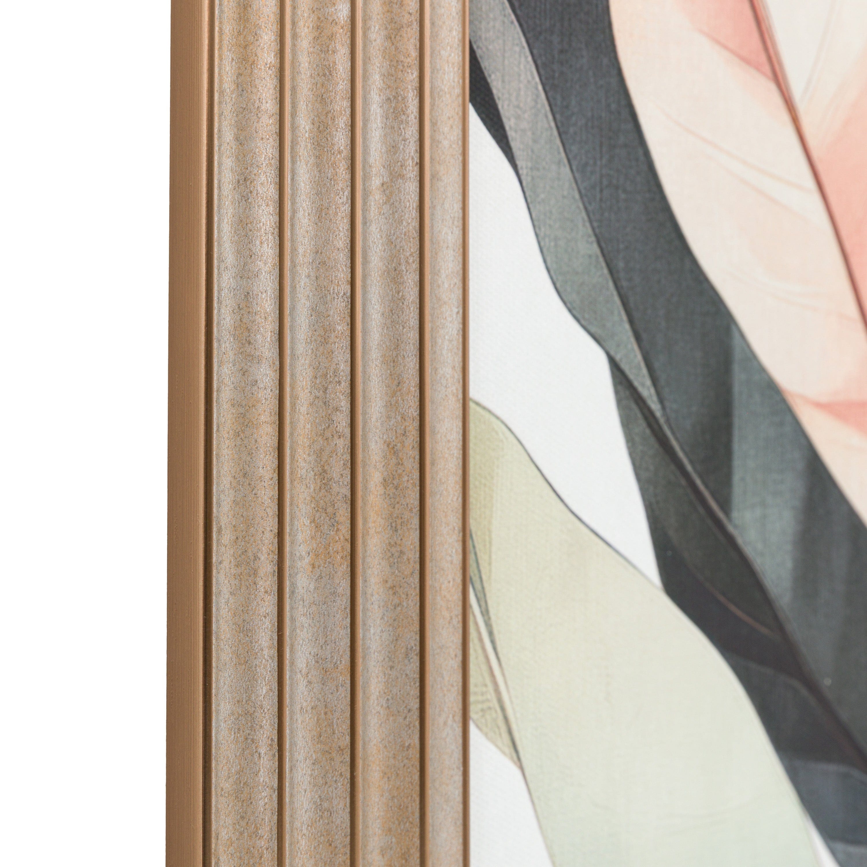 Update any interior with this bold and modern take on a botanical print. With muted pinks and earthy greens set against a creamy backdrop, the Ficus plant's stylised leaves create a stylish statement. Framed in a complementary dusty pink frame with copper lip detail.