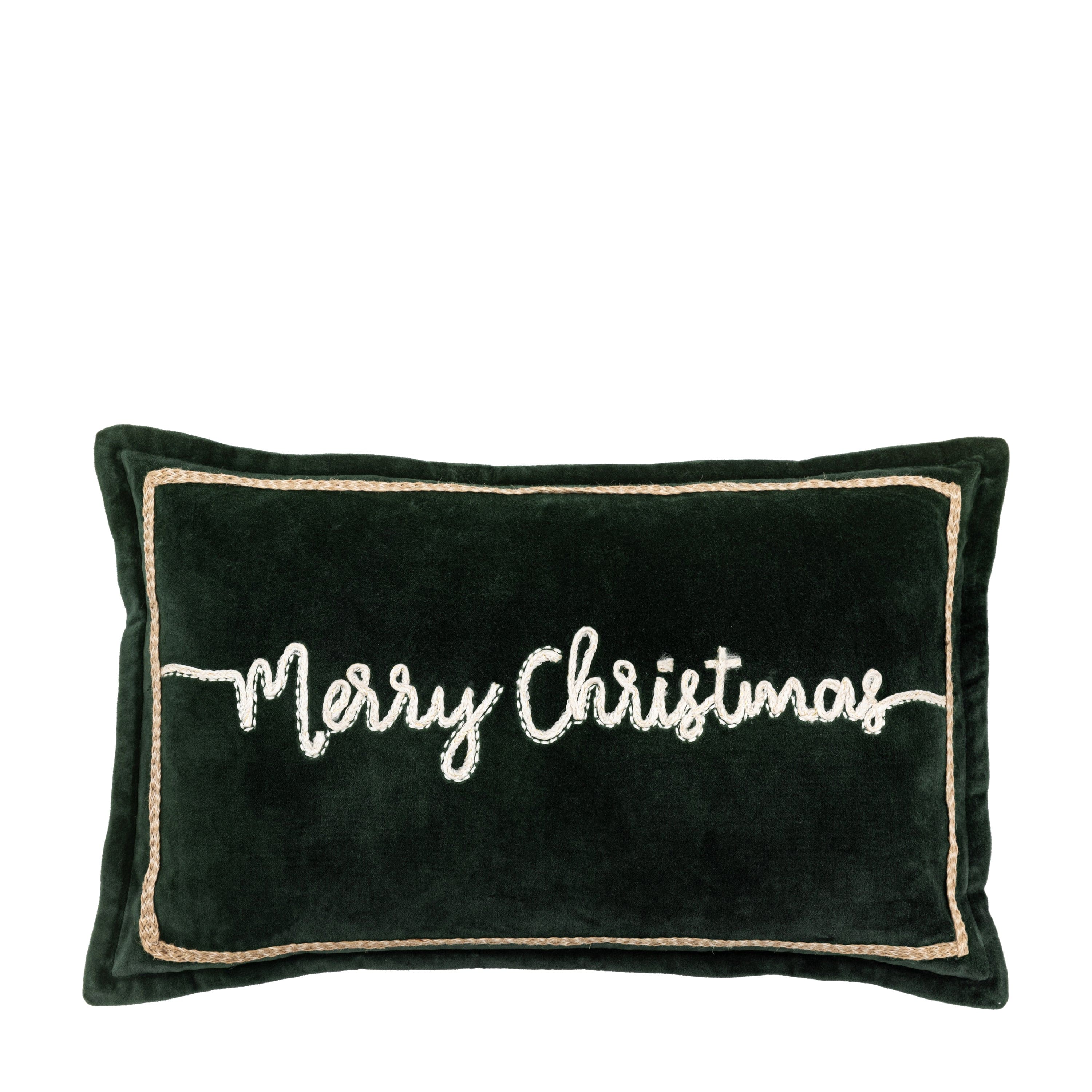 In lush green velvet, this festive cushions applique trim and merry embroidery will ensure a very Merry Christmas in comfort an style.