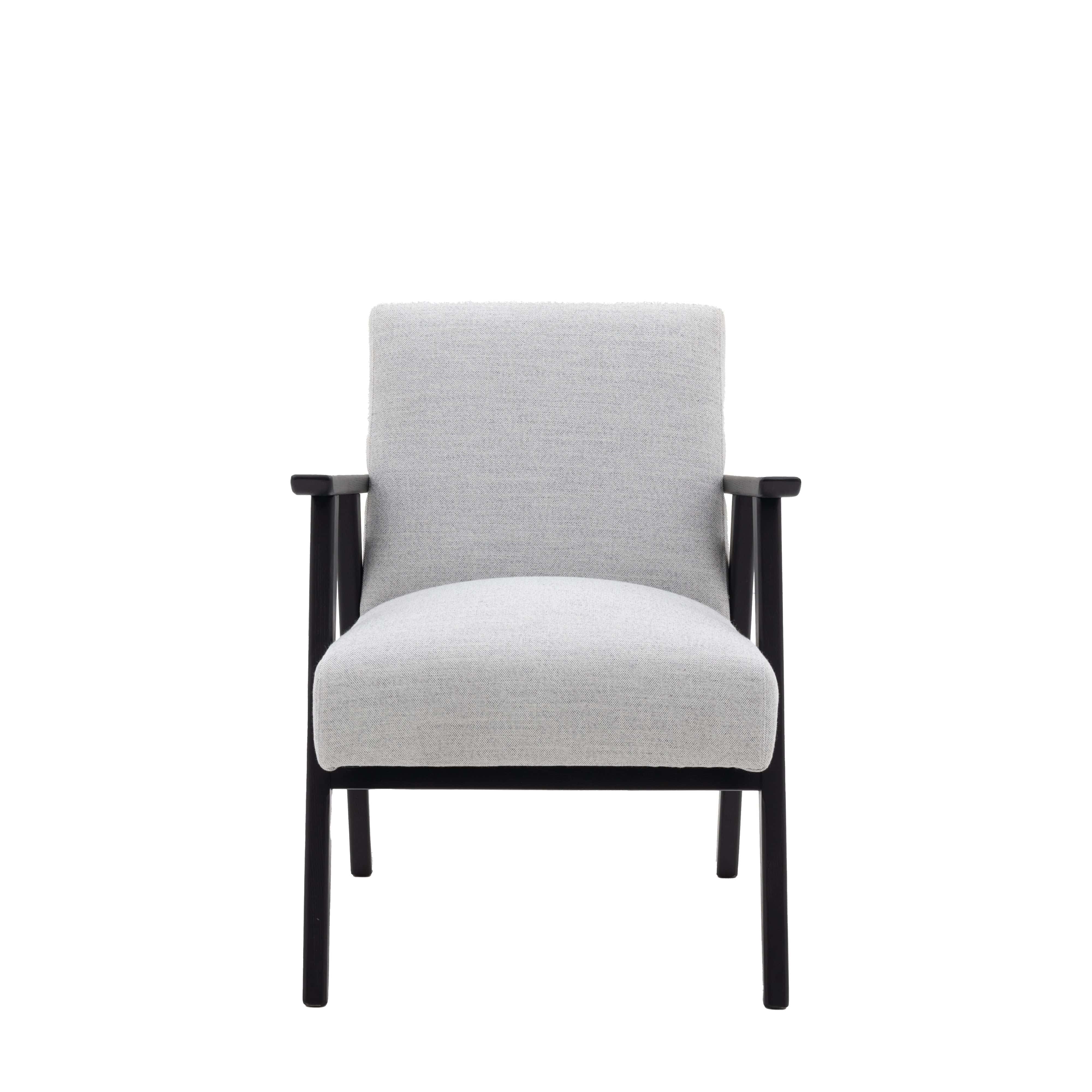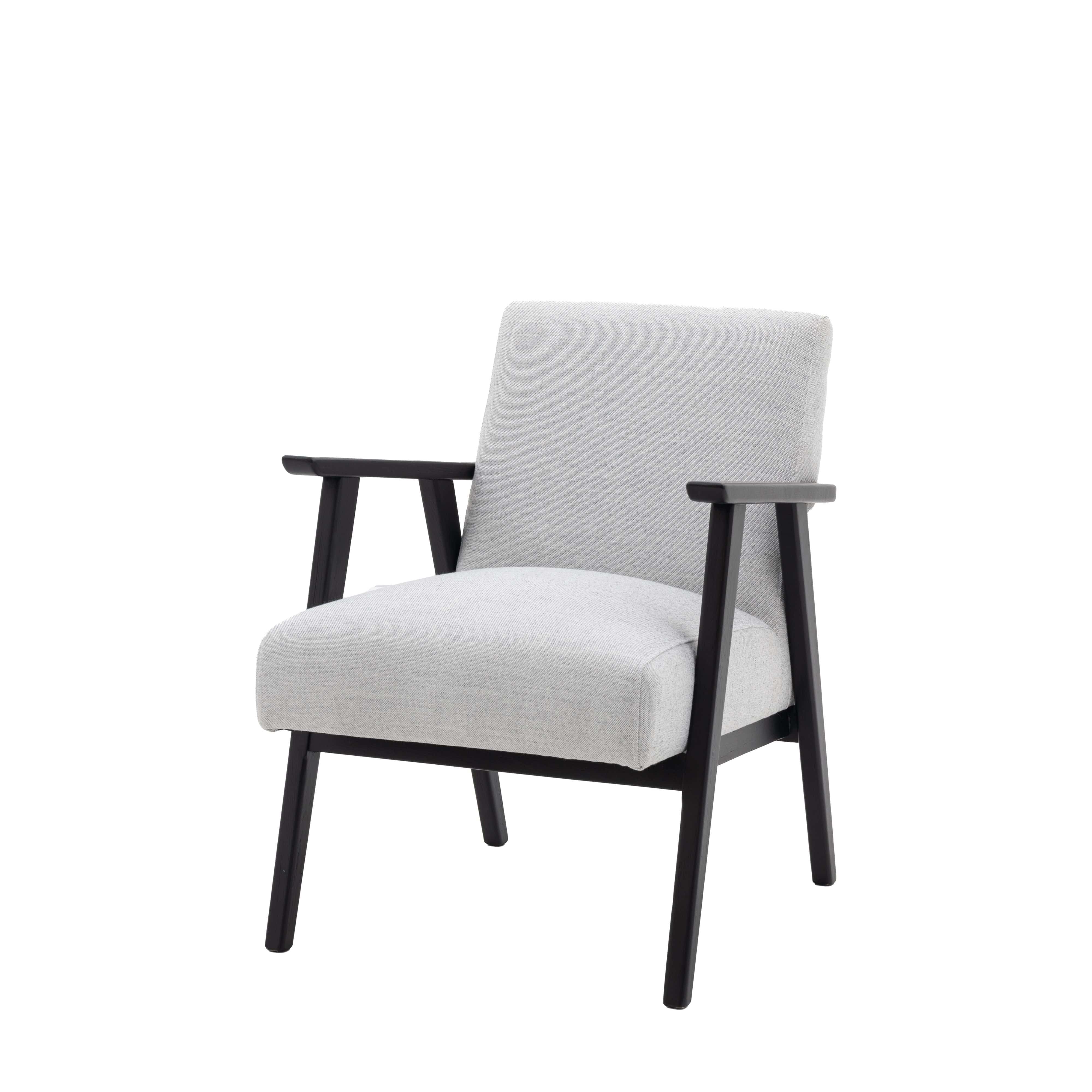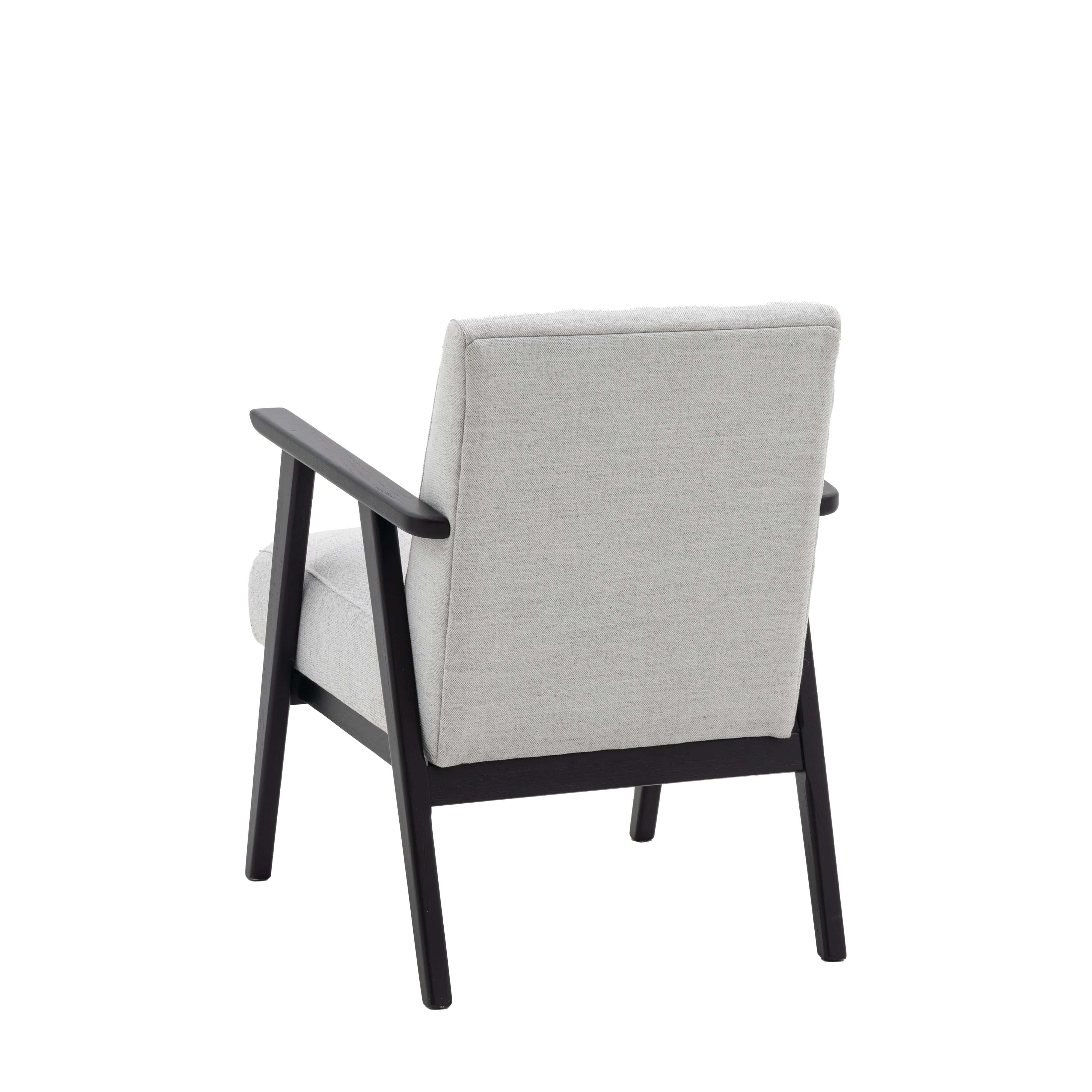 Introducing the Durston Armchair - a Mid-Century modern inspired classic that will add a touch of sophistication to any room. With its striking black wood finish and clean, modern lines, this chair is sure to make a statement.
