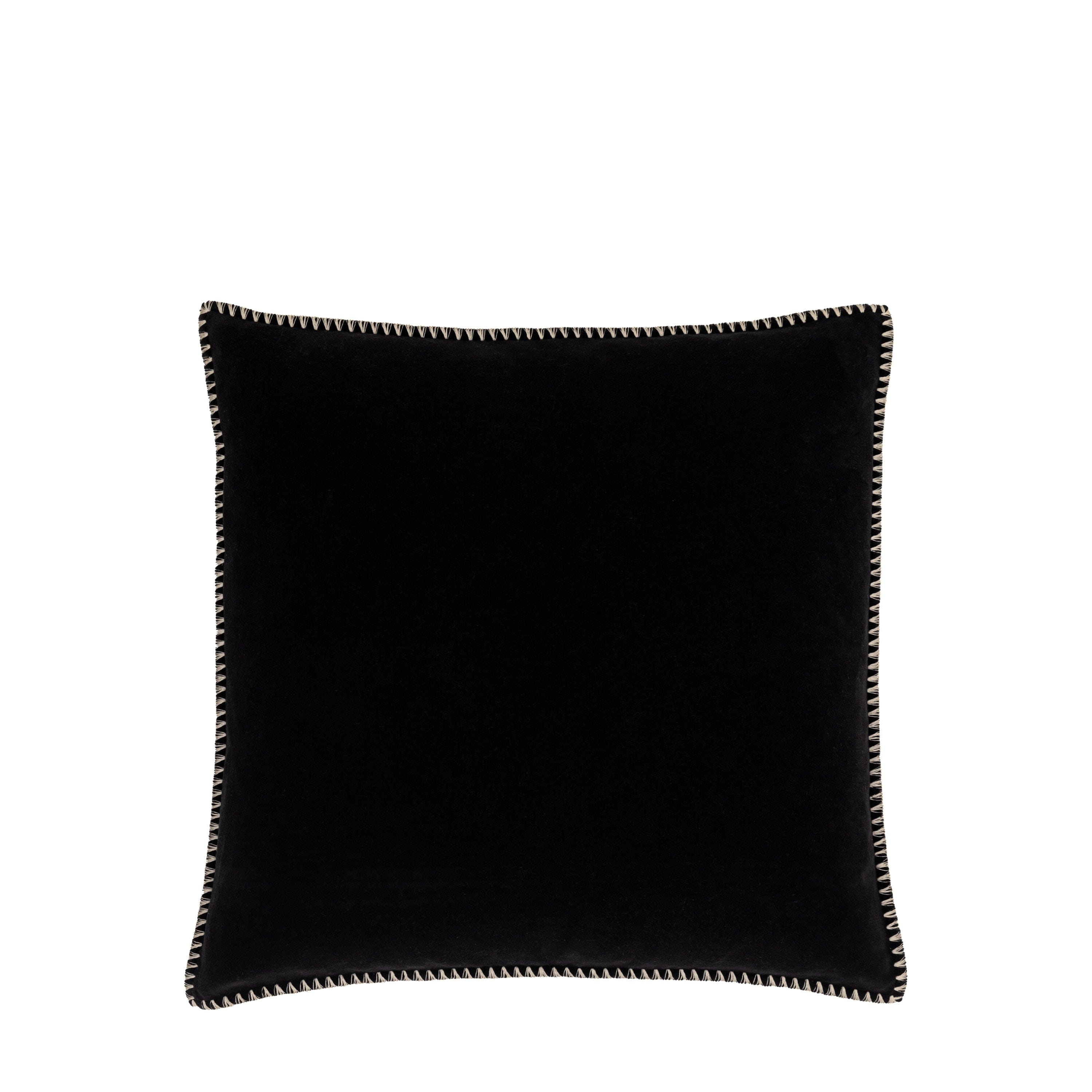 A luxurious cotton velvet cushion with subtle 'emb edge' embroidered detailing.