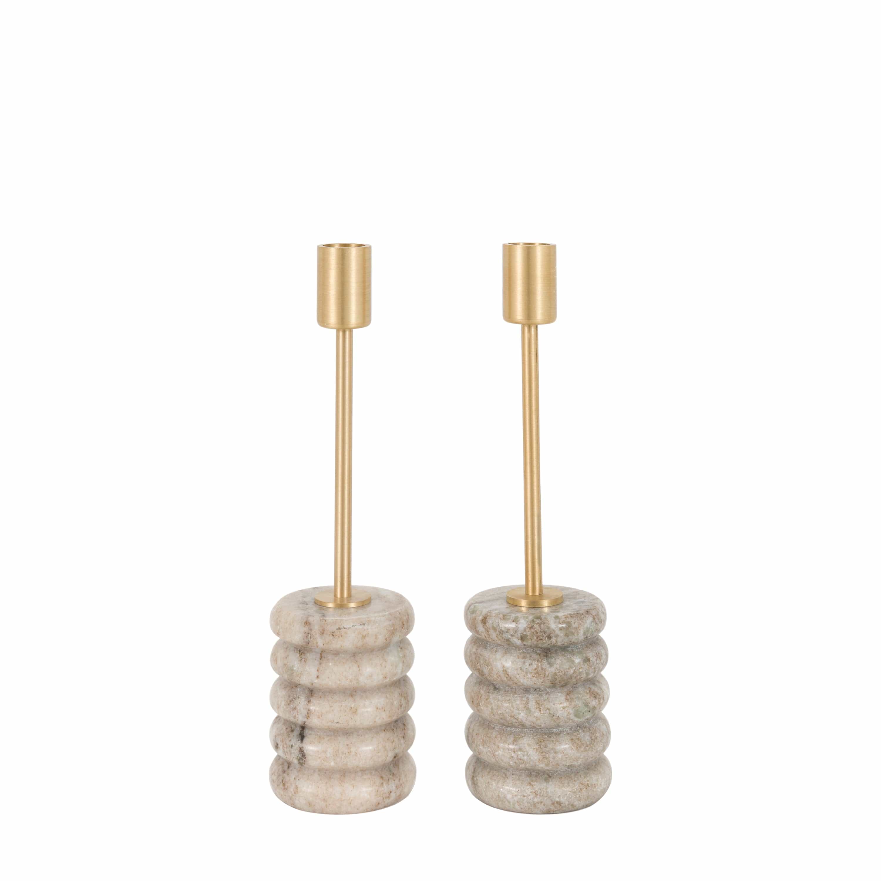 Novi Gold Candle Stick Set of 2 Beige Marble