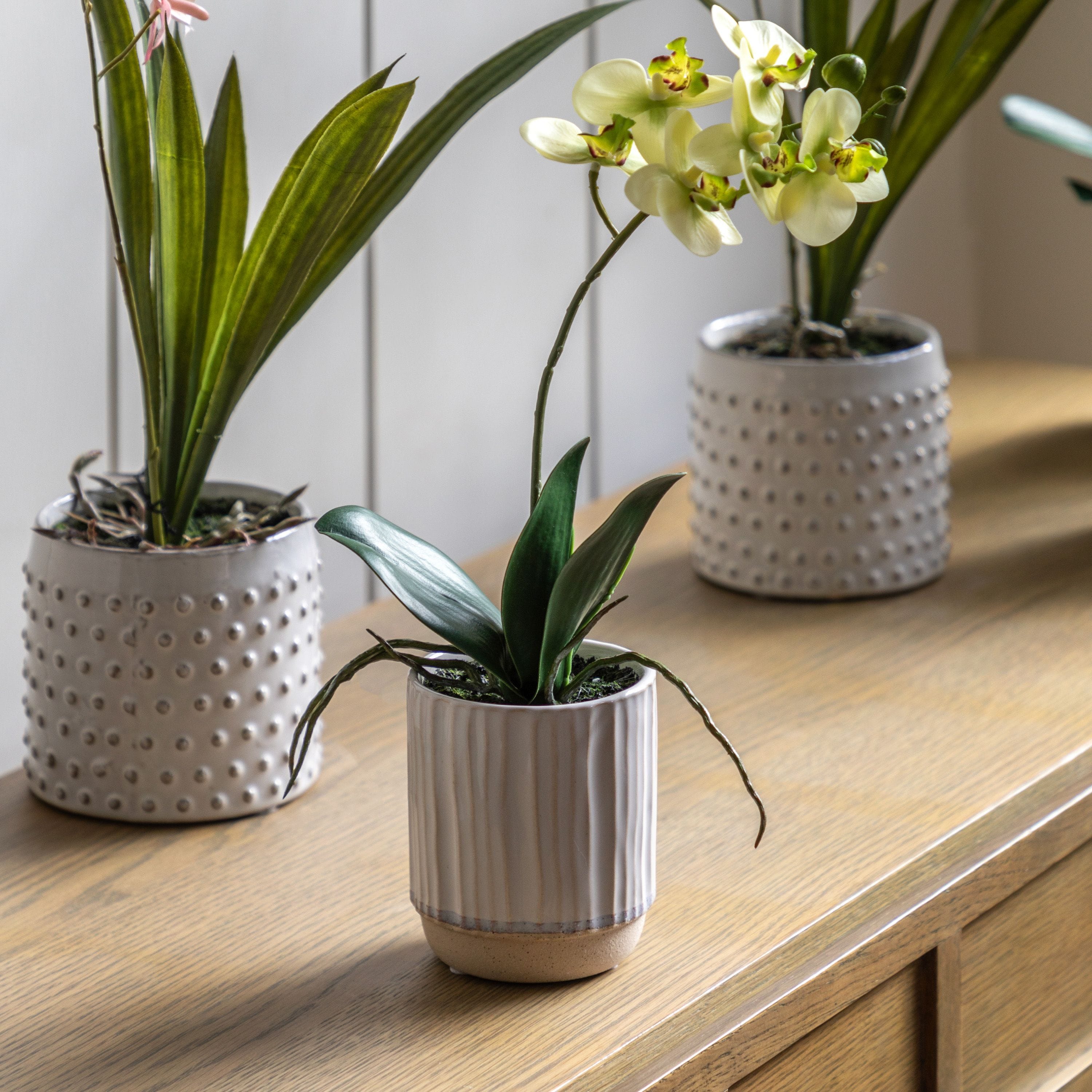 Orchid Cream in Ribbed White Ceramic Pot Small