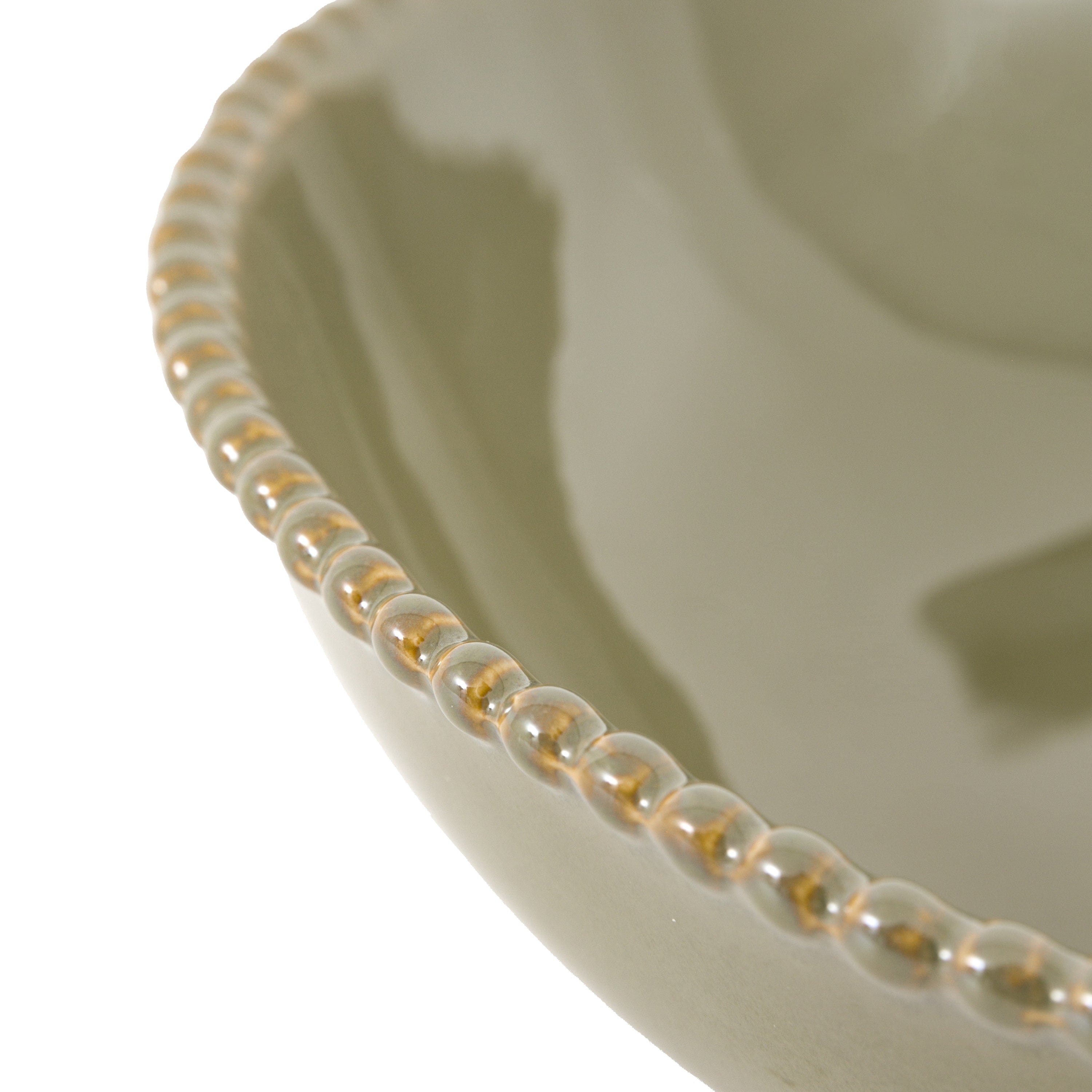 With a high gloss olive green finish and soft organic curves, this set of 4 shallow pasta bowls are finished off with a beaded edge trim. Dishwasher and microwave safe.