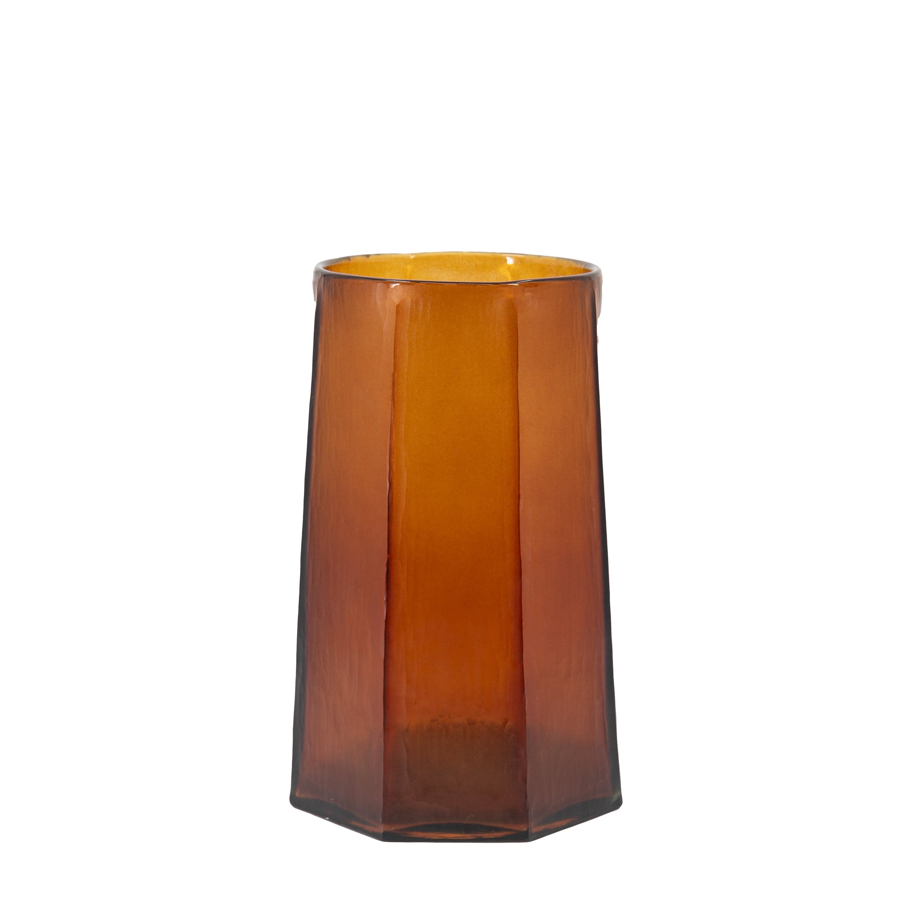 Bringing an artisanal touch with this handblown glass hurricane lamp combines rich amber tones and an unusual shape to create a cosy warm glow.