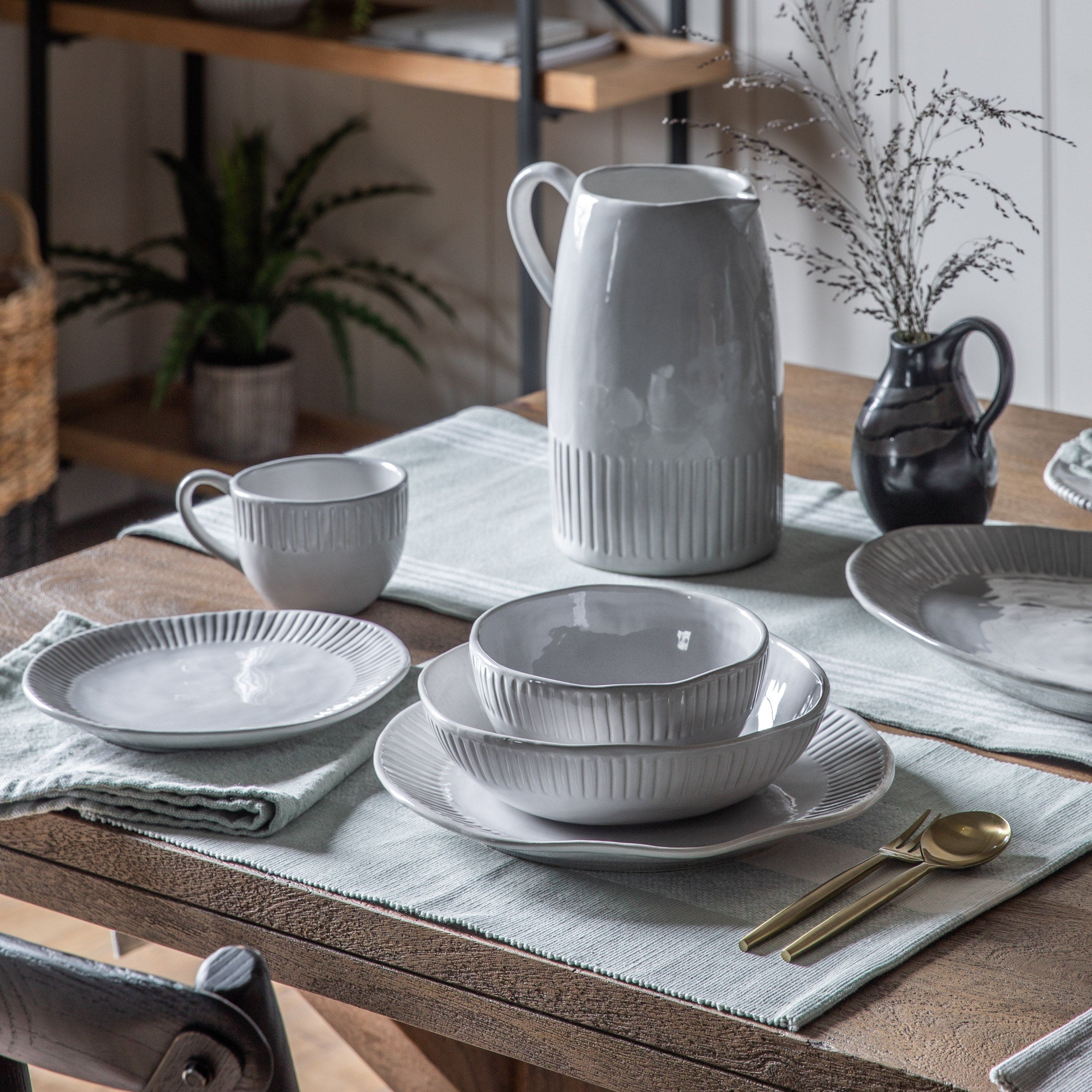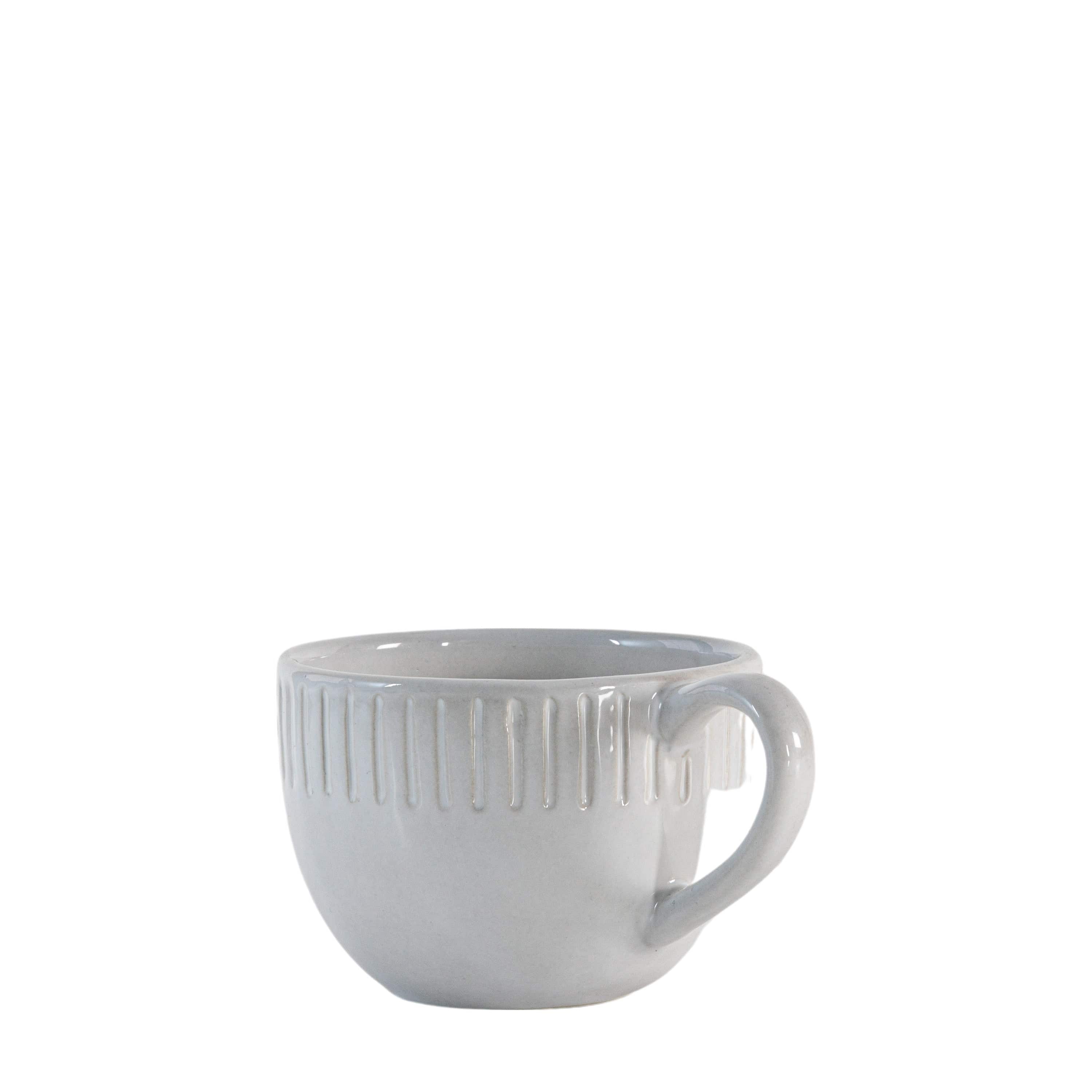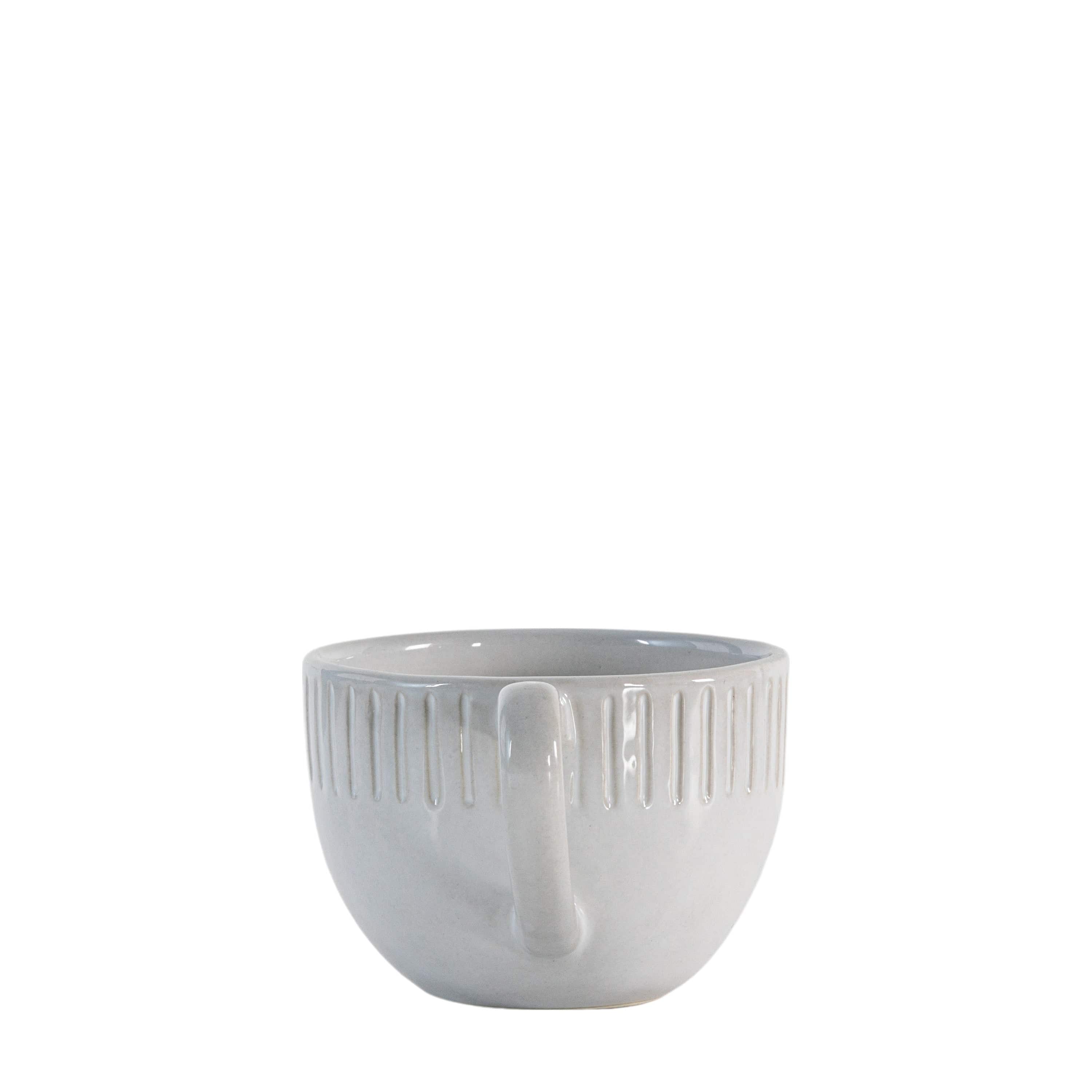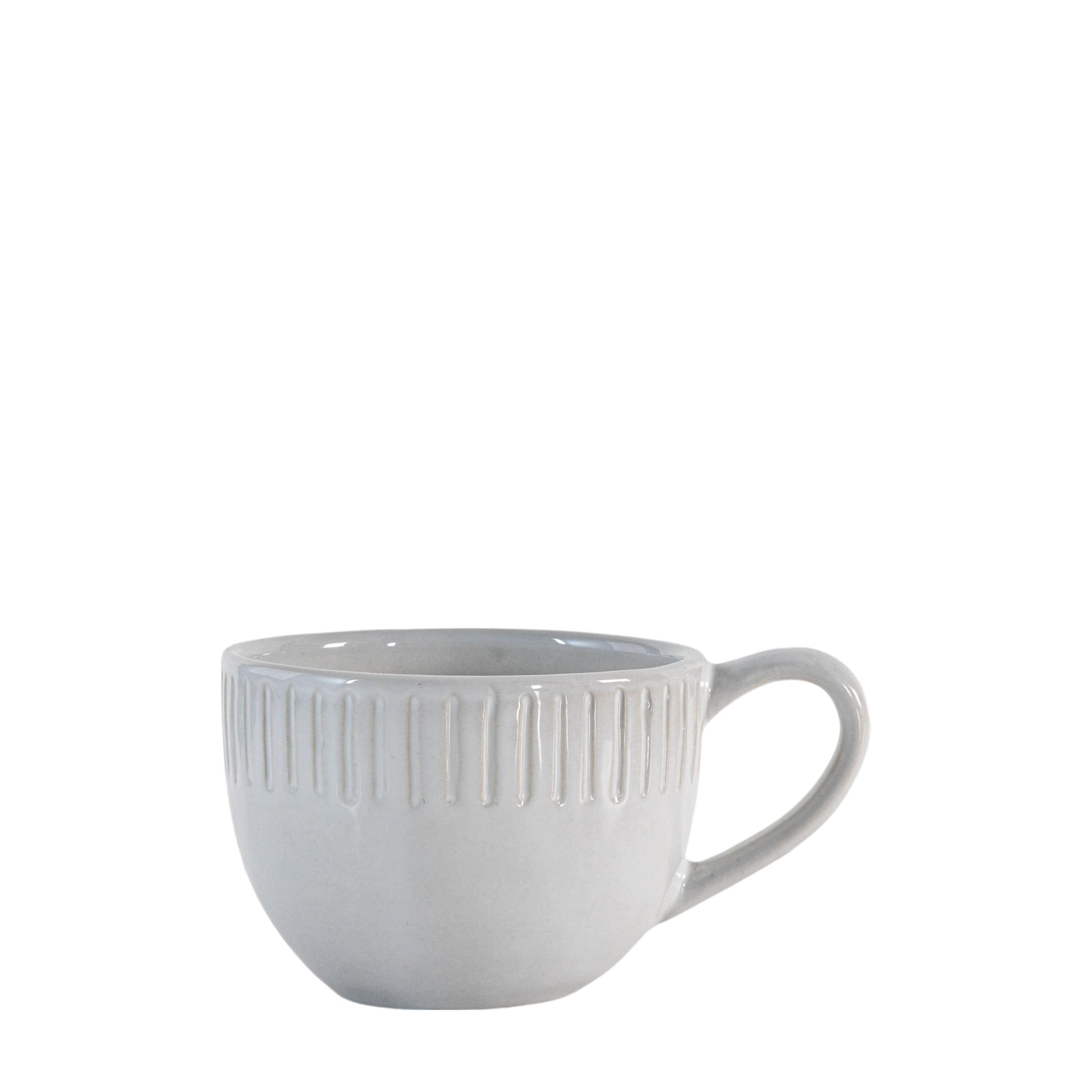 Set of four mugs which are our exclusive own design, featuring an organic shape and textured ridge detailing around the outer rim. Coordinating pieces available.