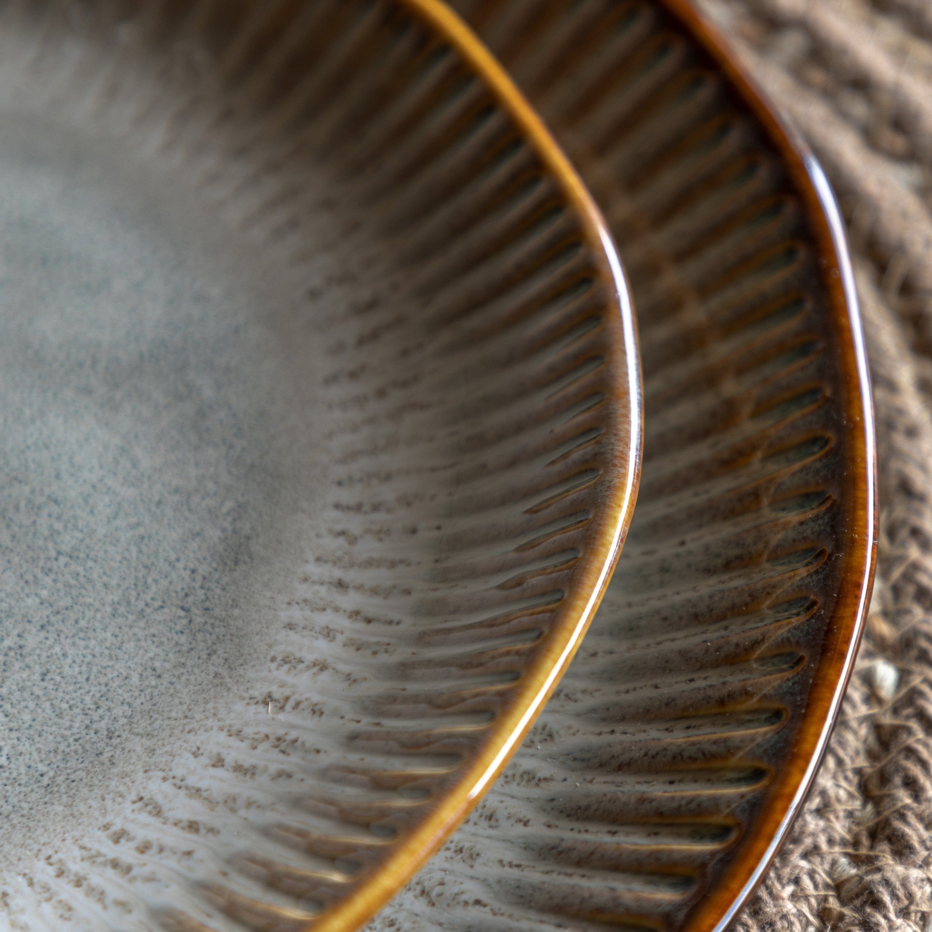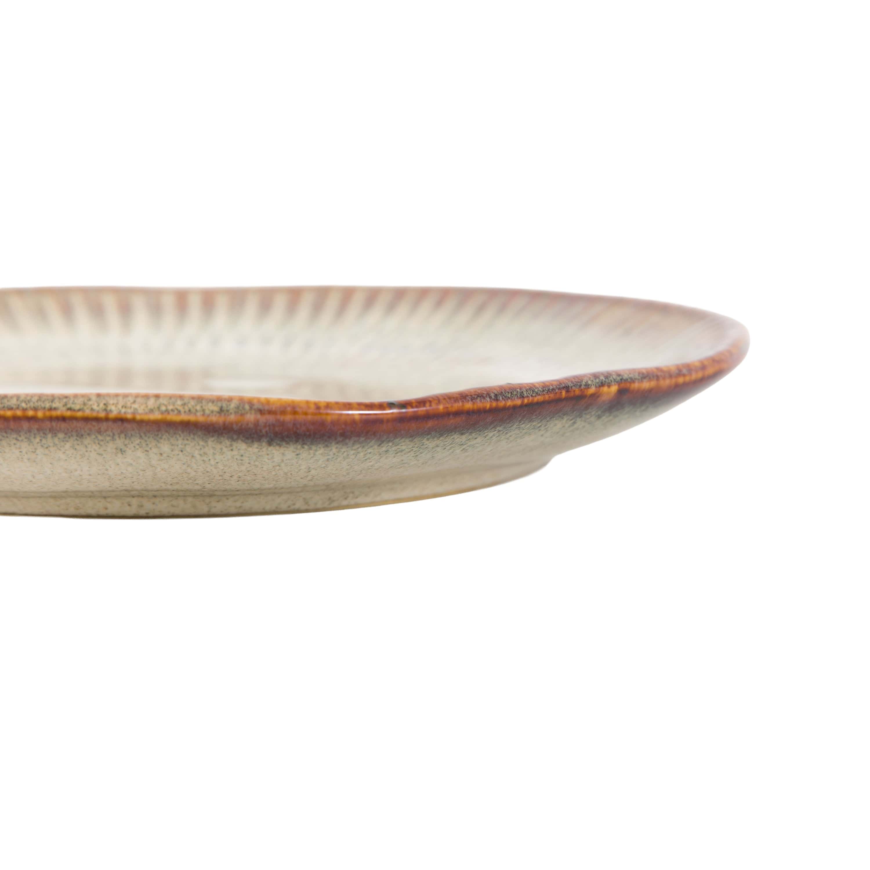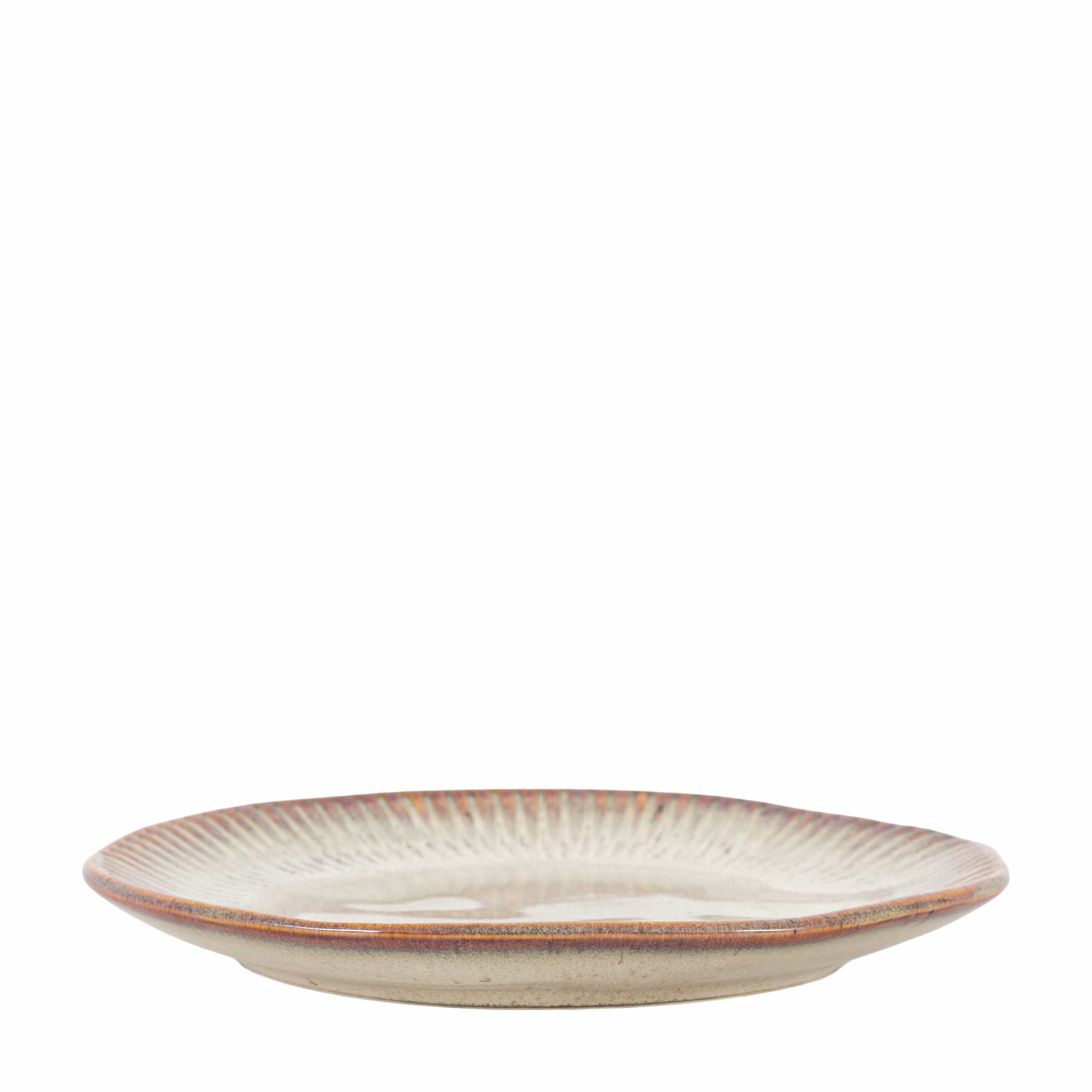 With soft organic curves and rustic stone colouring, this set of 4 side plates are finished off with textured ridge detailing on the edge of each plate. Dishwasher and microwave safe.