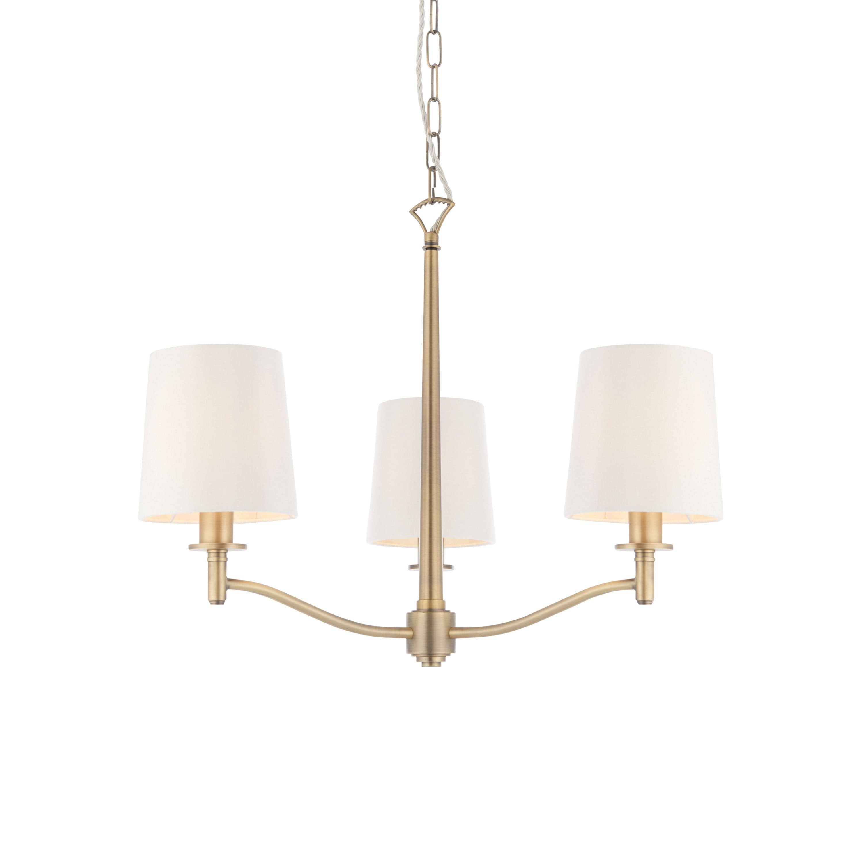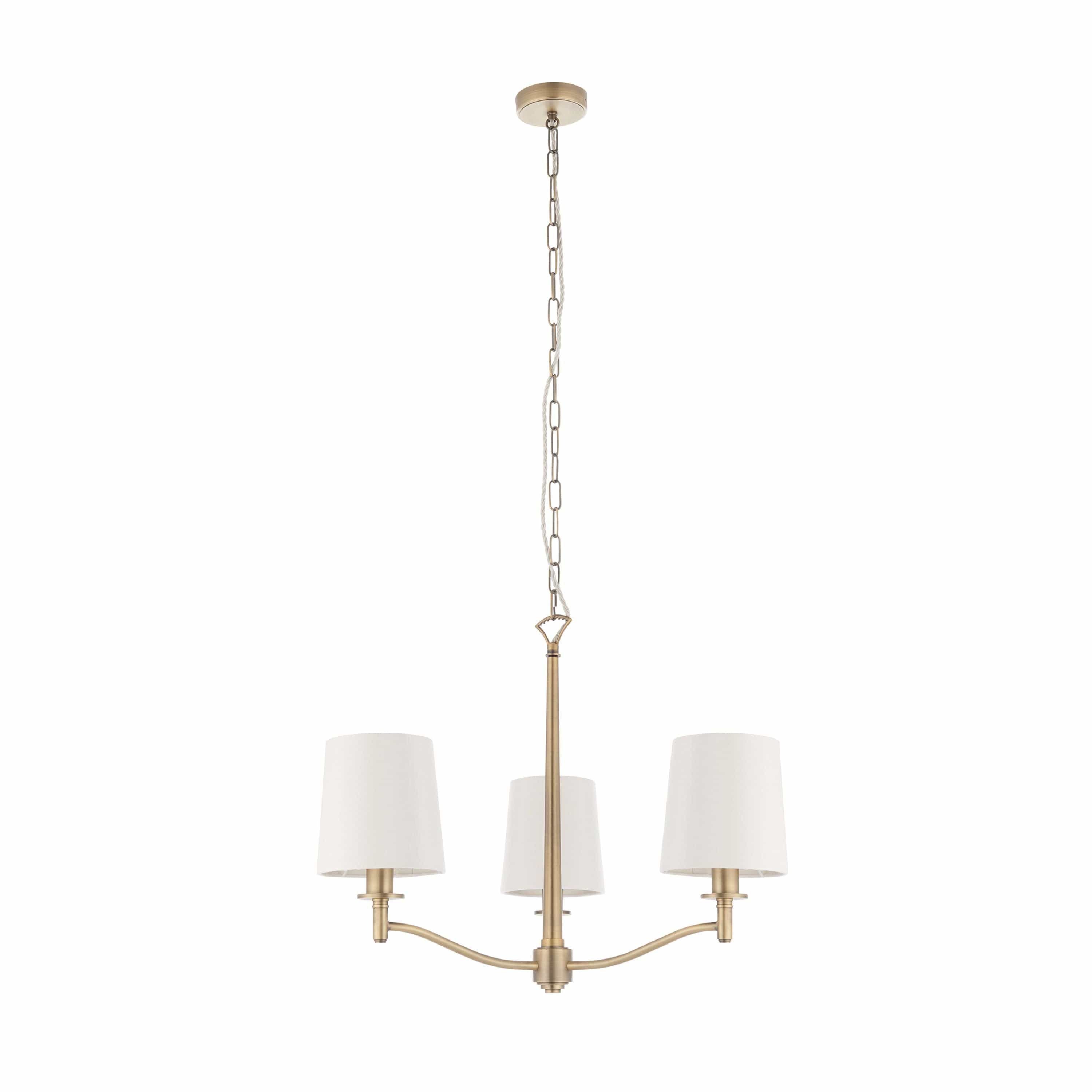 Introducing the Easton 3 Pendant Light, available now at House of Isabella. This stunning 5 light pendant features a matt antique brass effect plate and vintage white faux silk shades, adding a touch of elegance to any room. But what sets this pendant light apart is its fast delivery - you won't have to wait long to enjoy its beauty in your home.