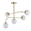 Elevate your home decor with the Eccles 5 Ceiling Light from House of Isabella. This stunning light fixture features a sleek mid-century design, combining glossy opal blown glass shades with brushed brass metalwork. The result is a perfect balance of soft curves and linear structure, creating an on-trend look for any room.
