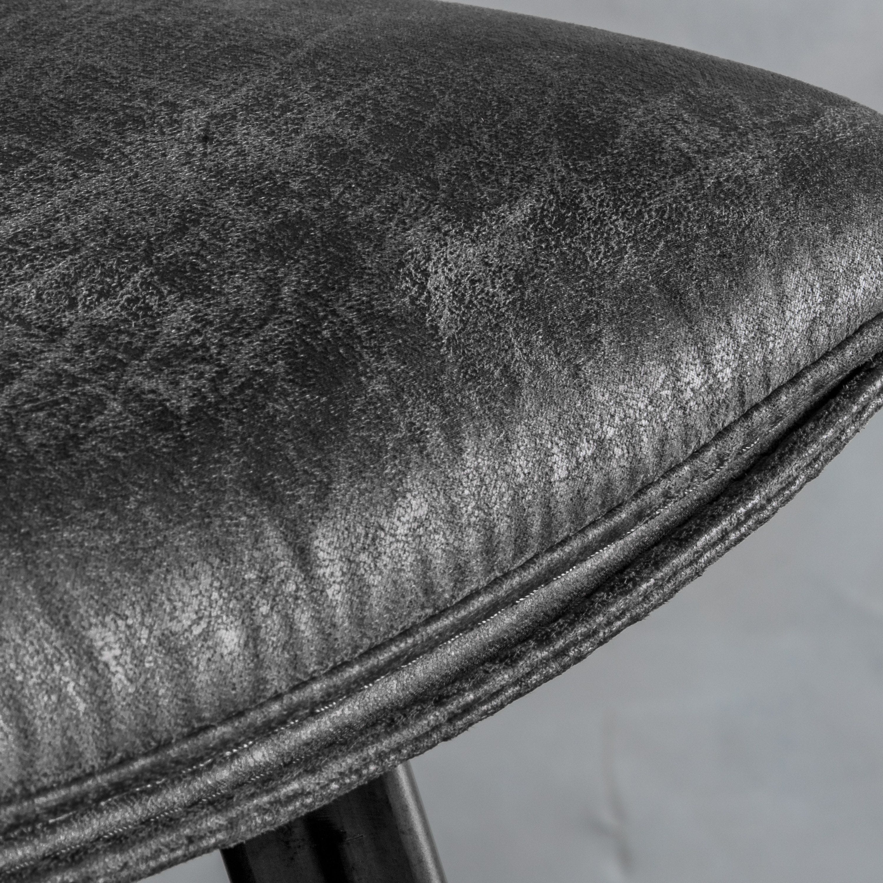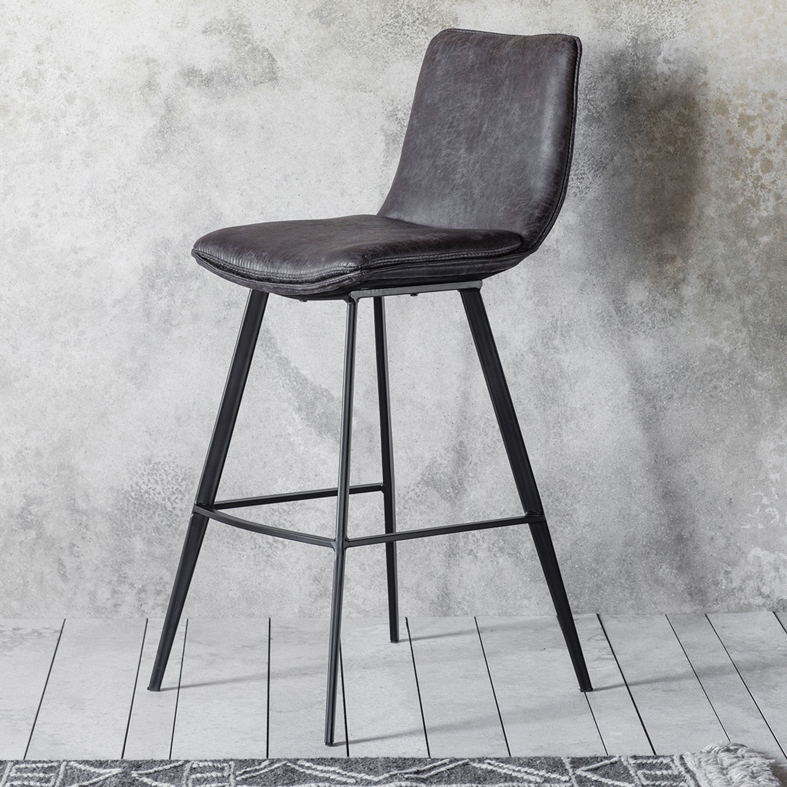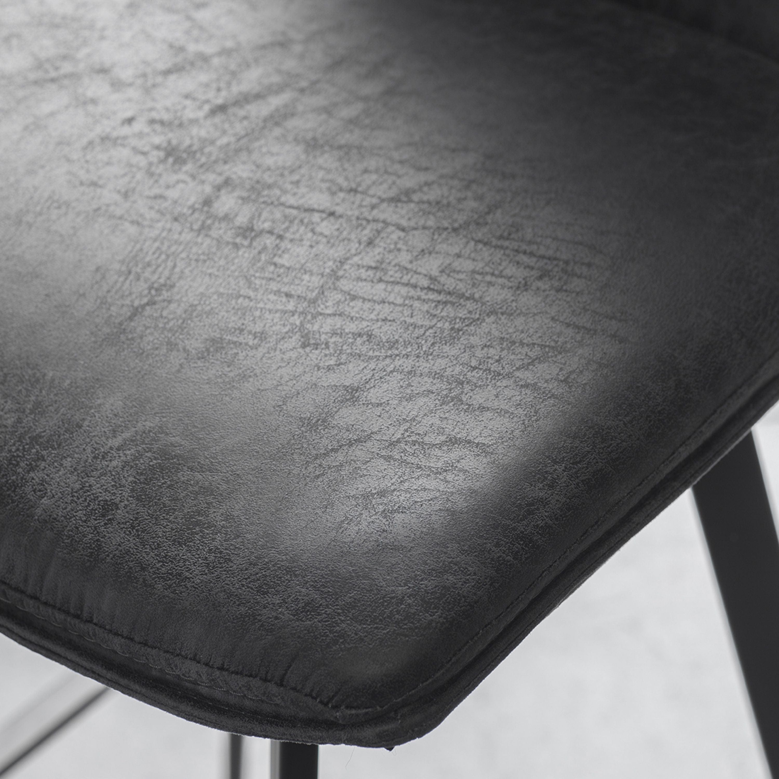 Introducing the Edithmead Grey Stool (2pk) W420 x D600 x H1060mm, a contemporary and stylish addition to any casual dining area. Made with ebony faux leather and sleek angled black metal legs, this stool features stitched seam detailing for a rustic touch.