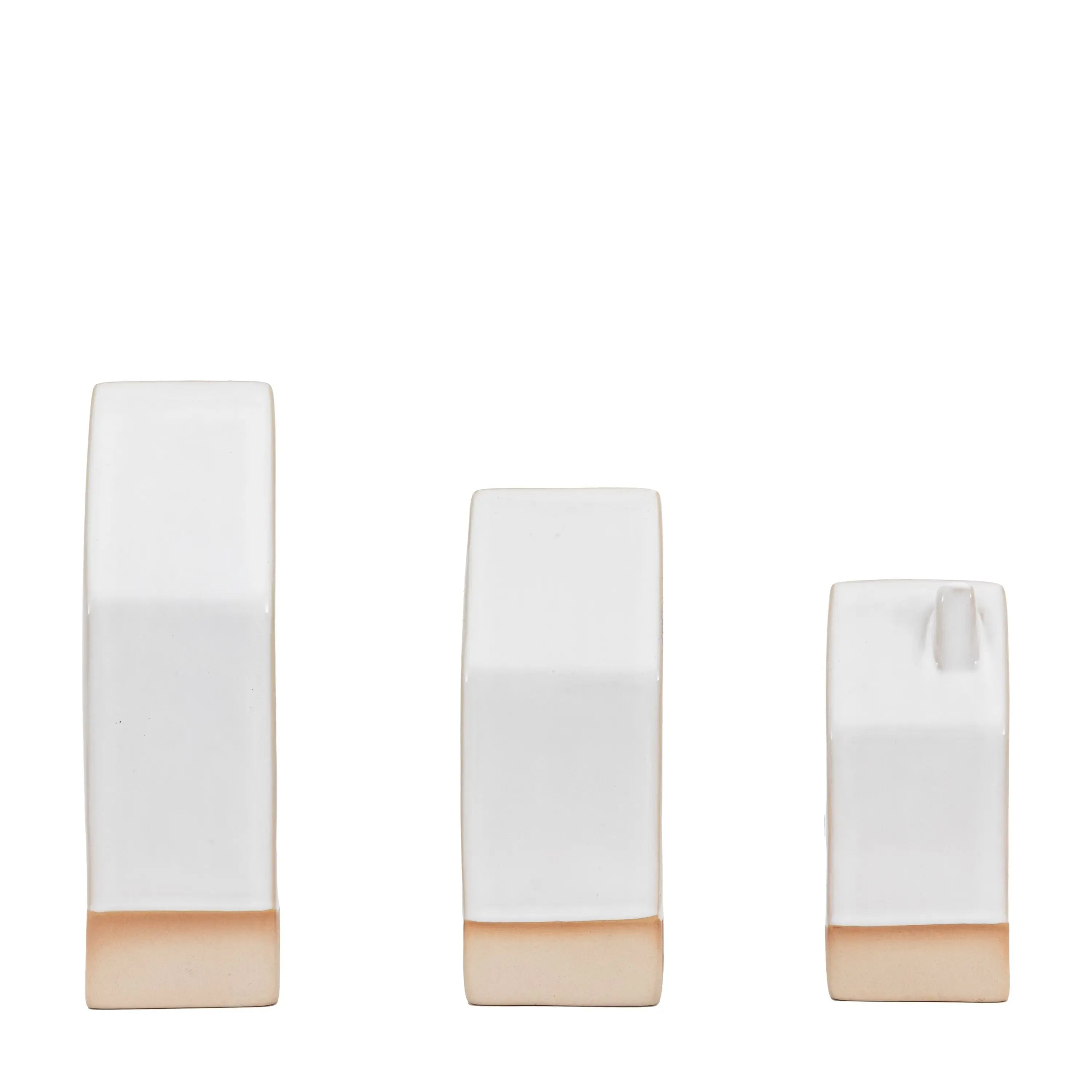 Light up your room with some cosy home charm. This set of 3 tealight houses are finished with a pearly white glaze and contrasting unglazed lower portion, each featuring a different window layout adding a delightful glow to any room. Candles not included.