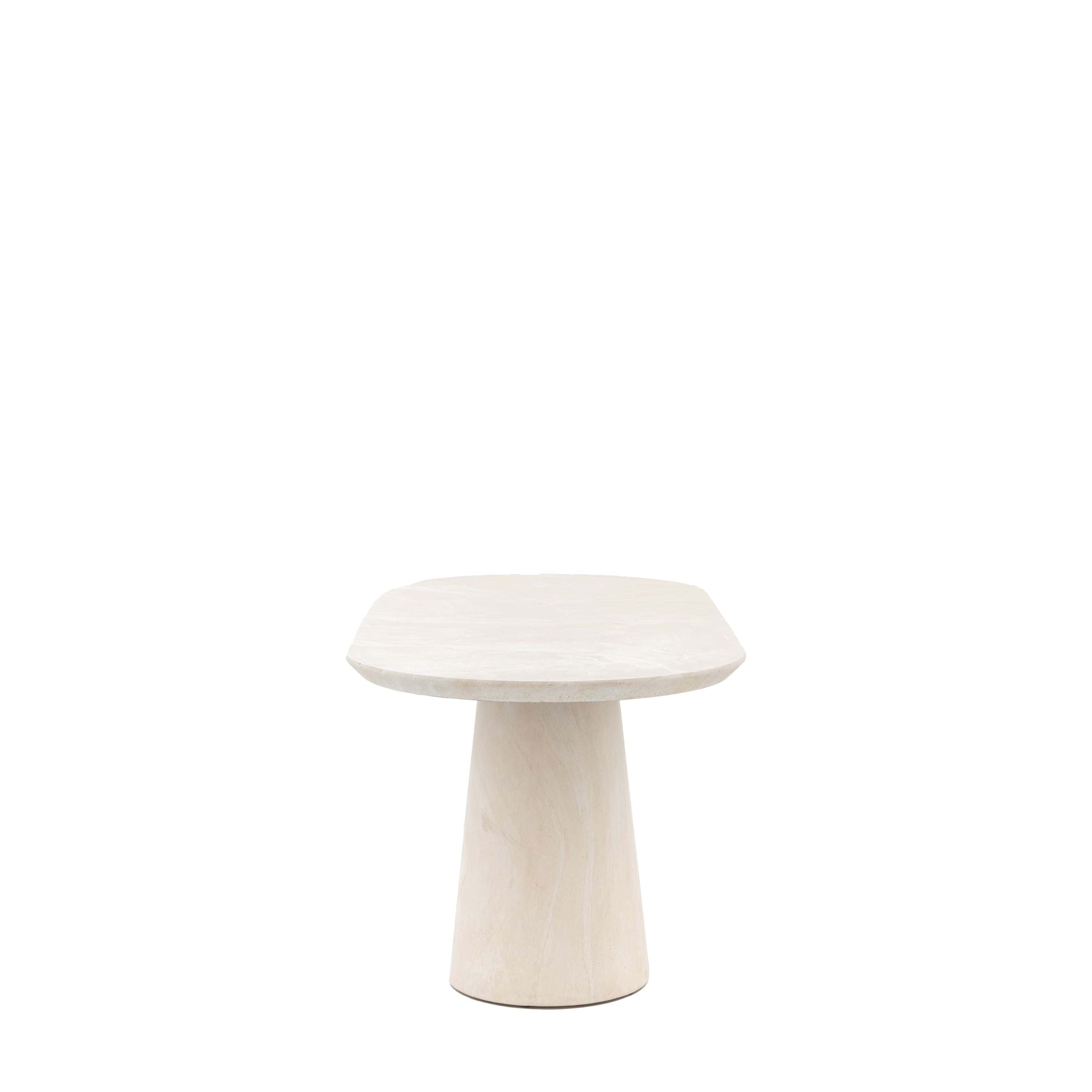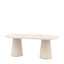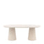 This table is a striking piece of furniture that combines modern design with raw materials. Its sleek, oval tabletop is crafted from durable concrete, while the two sturdy pedestal legs provide a solid base. This unique combination of materials creates a contemporary and industrial look that is perfect for both indoor and outdoor dining spaces.
